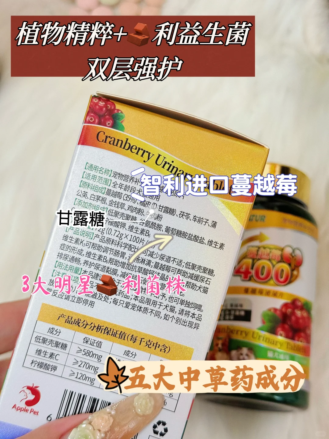 相信大多数铲屎官也清楚蔓越莓的作用,我之前用的爱果萌兽-奥萨蔓越莓泌尿片这个月出了升级装👉蔓越莓400