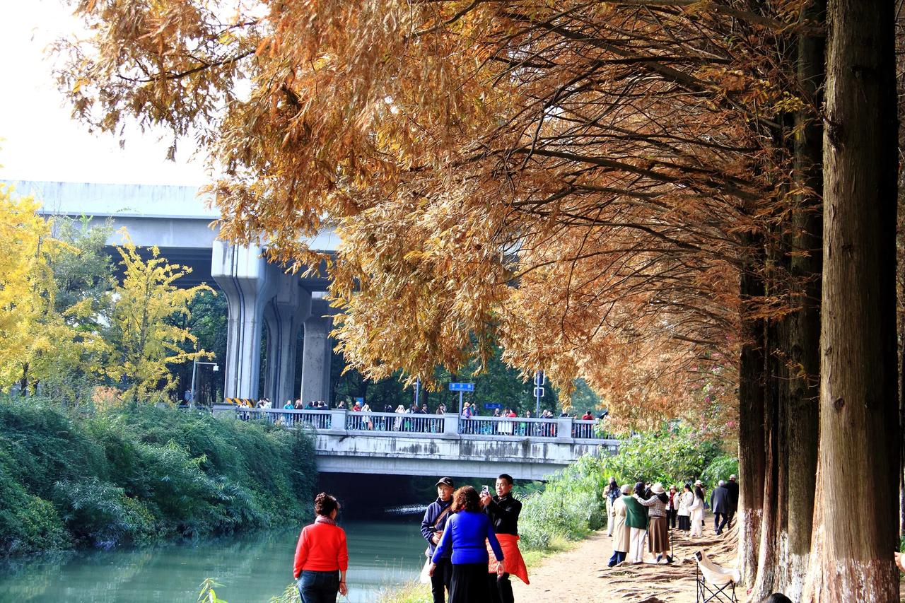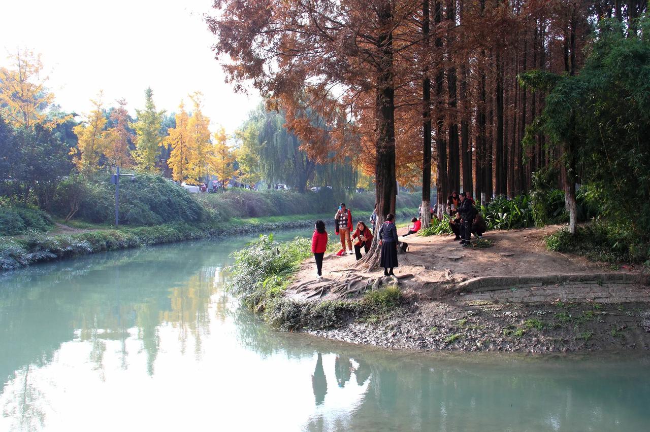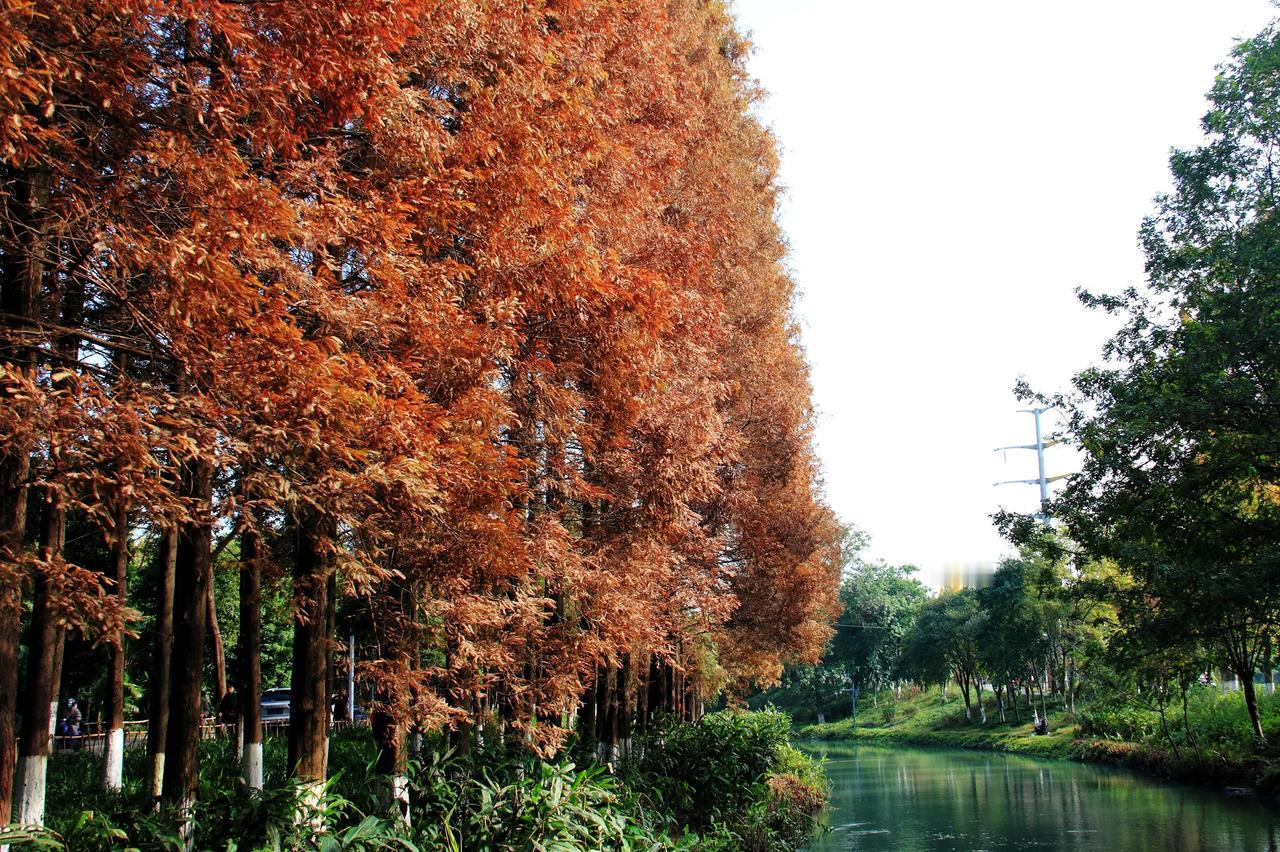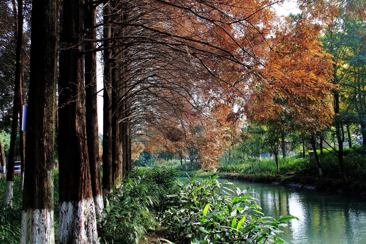 【升仙湖畔沙河边 一年一度水杉红】20241130 时光流逝已年末,季节更迭到隆冬。升仙湖畔沙河边,一年一度水杉红。 这几天,沙河边的水杉美出了圈,升仙湖成了成都最热门的网红打卡地。年年都去拍水杉,难免有点心理抗拒。无奈天气这么好,不去走一趟有点说不过去。老天爷也是作怪,前段时间阴雨连绵无阳光,想拍菊花没好天。这几天,菊花残了却又天天出太阳。说实话,水杉哪有菊花美呀?!何况,狭窄的河边人满为患,挤挤挨挨,真怕一不小心掉河里去了。 28号那天,天气不错,去了升仙湖。阳光挺好,雾气偏重。水杉有点干枯,叶片不太滋润,灰扑扑的,颜色没有往年那么红。加上雾气比较重,景色不太靓丽。不过,光线好的地方,选择好的角度,照片还算可以。 人多,拍个干净镜头不容易。往年只是大妈们在尽情欢乐,今年又多了好些“围炉煮茶”的雅士。摆开茶桌座椅,茶炉茶具,以及配套设备,或坐或躺地在河边树下喝茶晒太阳。 文人雅士,烹茶品茗,熏陶的是心境,讲究的是环境。或雅居静室,或翠竹庭院,或山石松风,讲究的还要熏香更衣。世人喝茶,就没有这么多讲究了,尤其是成都人爱坐的茶馆,那就是一个随意、热闹、大声武气摆龙门阵的地方,一个市井烟火气极浓的地方。 近年兴起的围炉煮茶,不失高雅,却又热闹,并兼具新奇时尚。似乎迎合了人们喜欢热闹从众的心理,深受欢迎,尤其是年轻人的喜爱。但那也是需要氛围的。比如三五好友闺蜜,外出野营晒太阳,优雅环境,搭个帐篷,来个围炉煮茶,逼格立刻抬升了。 劳神费力地搬那么些设备,躺坐在河边杉树下川流不息的人流里“围炉煮茶”,图个啥?这等涵养功夫,实在令人佩服。