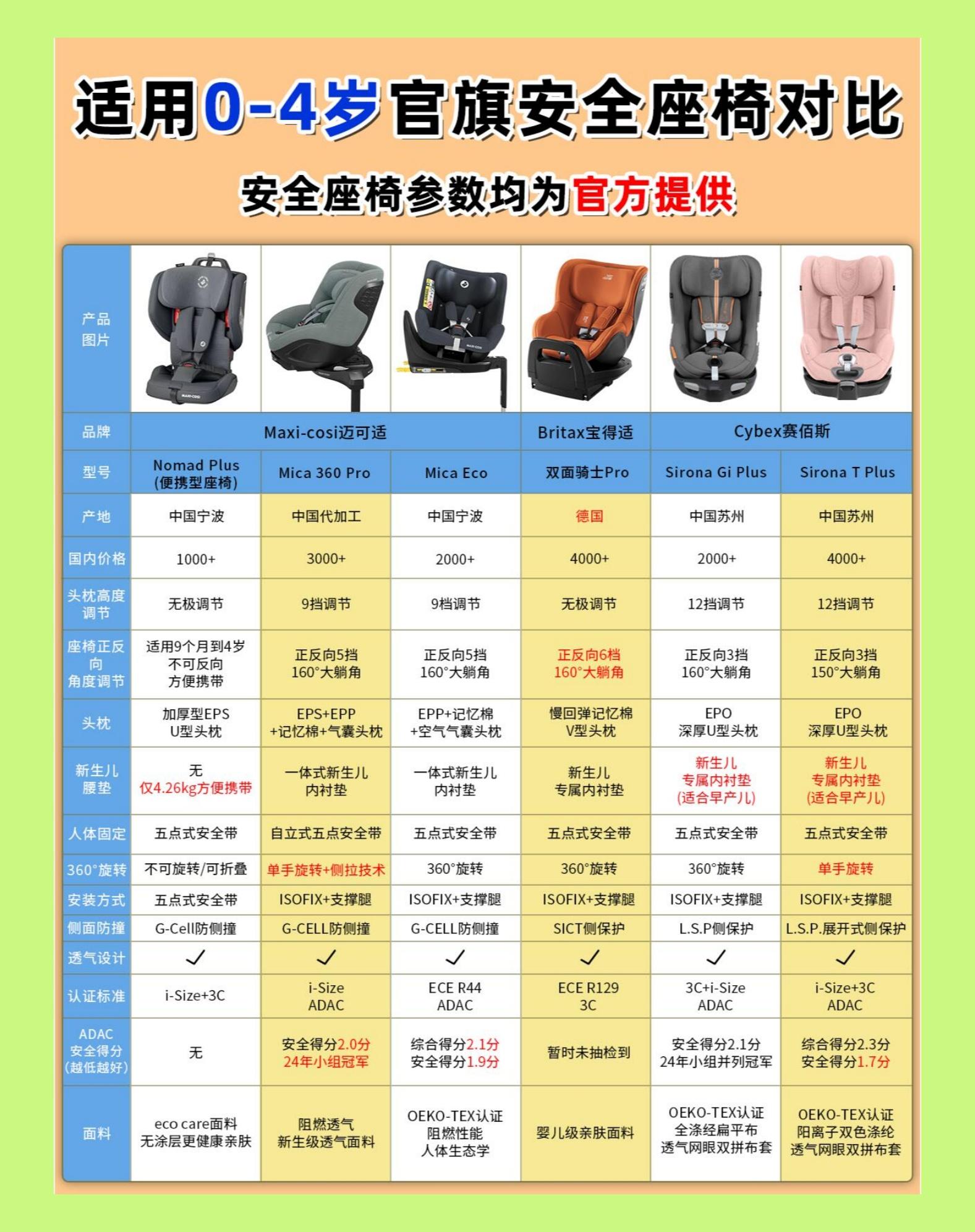 24年坠新18款热门安全座椅参数清单来啦。最近有很多妈妈们热门款0-4岁、0-7岁和0-12岁或3-12岁的安全座椅参数等,这些图片参数整理了2周现在分享给各位妈妈们。 妈妈们如何去在自己有限预算之内选择一款合适的安全座椅呢❓ 看完这篇就完全够啦! ➡️0-4岁分别是: 🔥迈可适 (Nomad Plus 便携座椅) 🔥迈可适 (Mica 360 Pro 侧拉黑科技) 🔥迈可适 (Mica Eco) 🔥Cybex (sirona Gi Plus) 🔥Cybex (s