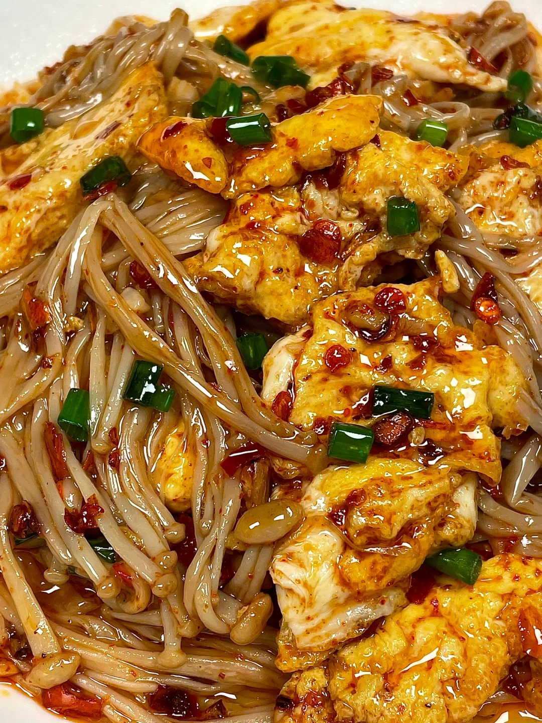 超好吃的金针菇炒鸡蛋!一定要试试!! 金针菇滑嫩脆爽,鸡蛋蓬松鲜香,营养美味巨下饭!好吃到停不下来[色色R]做法简单不翻车,求你们都去做!! [向右R]做法:如图6️⃣所示!