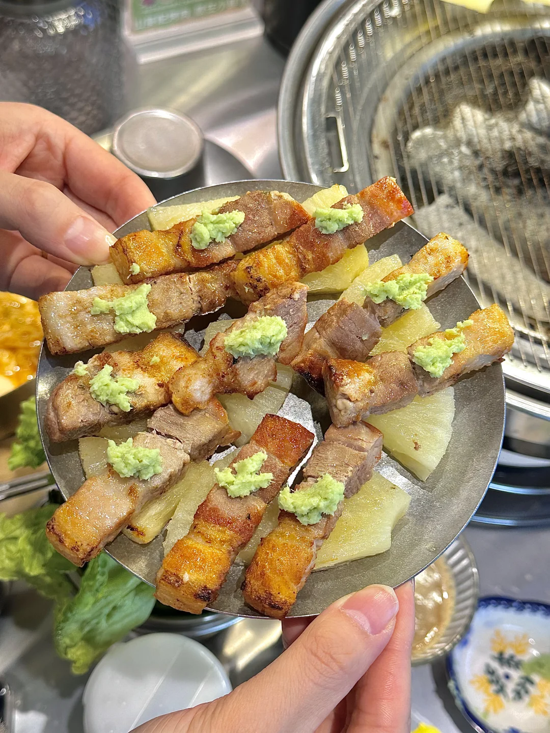 肉都是用木碳火烤的,搭配山葵好鲜好好吃啊