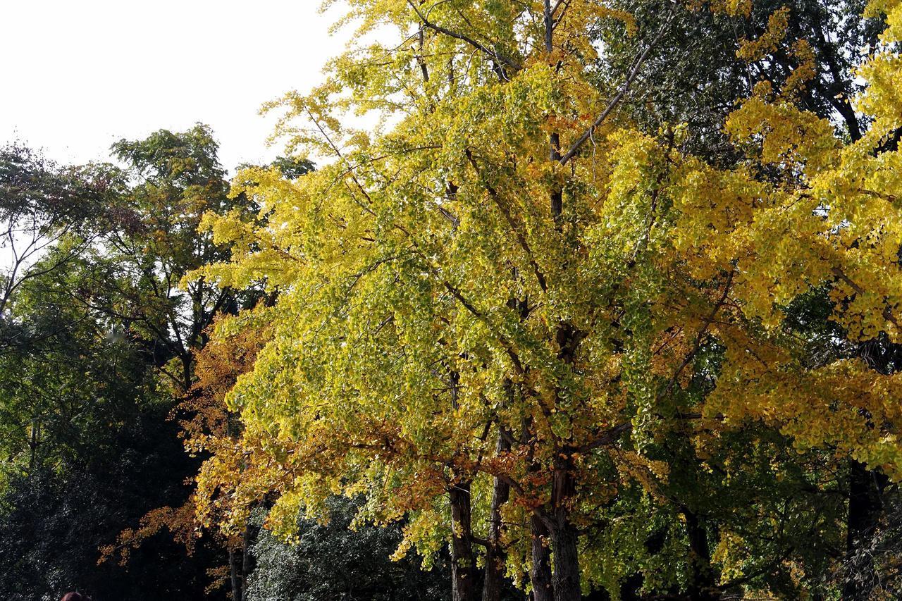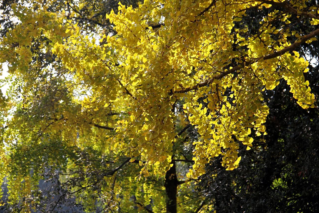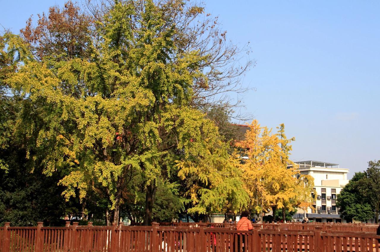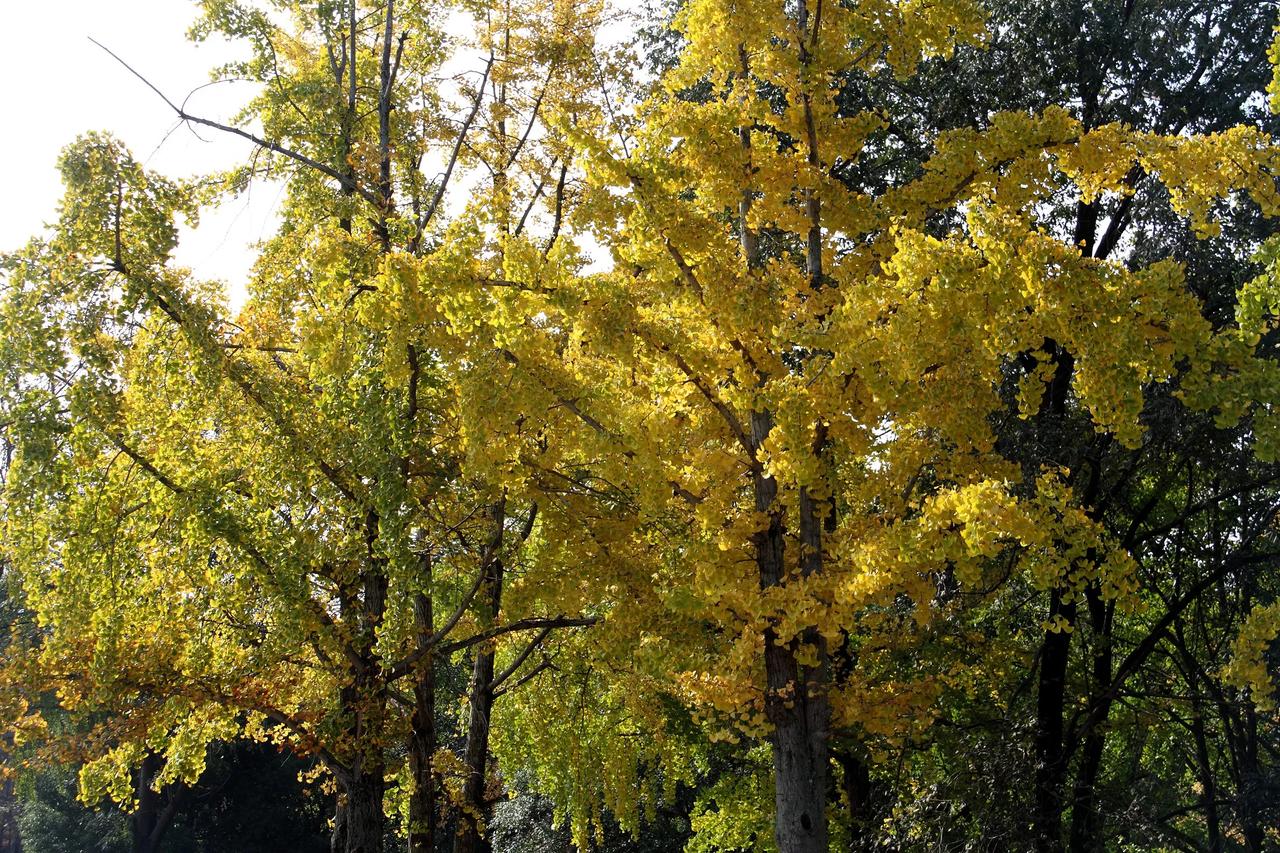 【沙河公园银杏黄】20241201 今年天气怪,冷得快,连带着银杏叶也黄得快。眼见得前几天还是绿油油的银杏叶,转眼就金灿灿亮晃晃的了。蓉城的银杏季到来了。此后的年终岁月,赏银杏拍银杏,将是蓉城人民最大乐趣。 上月28日到沙河边拍水杉,顺便在附近的沙河公园拍了点银杏黄。树不多,也不大,但枝叶繁茂,叶子青黄相间,滋润油亮,品相很好。冬阳和煦,晒得人暖洋洋的。到处都是晒太阳拍银杏的,一派欢乐祥和的景象。