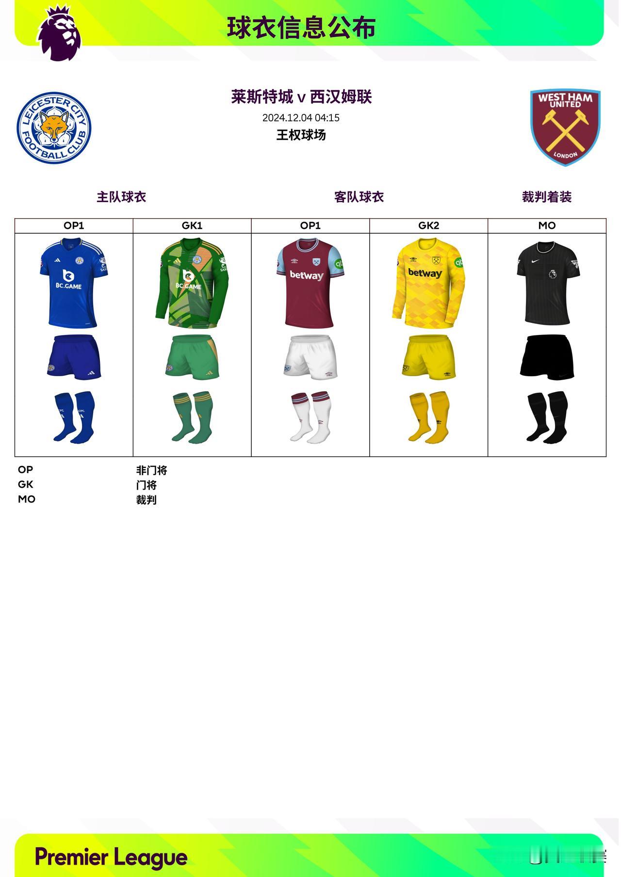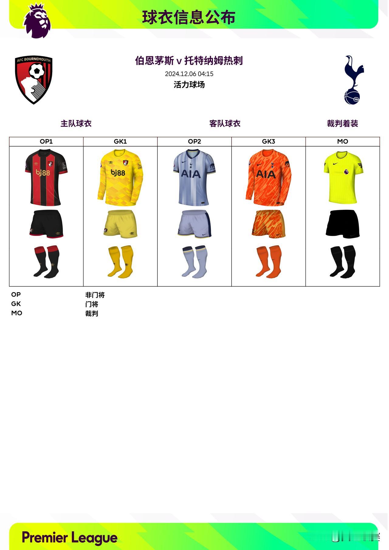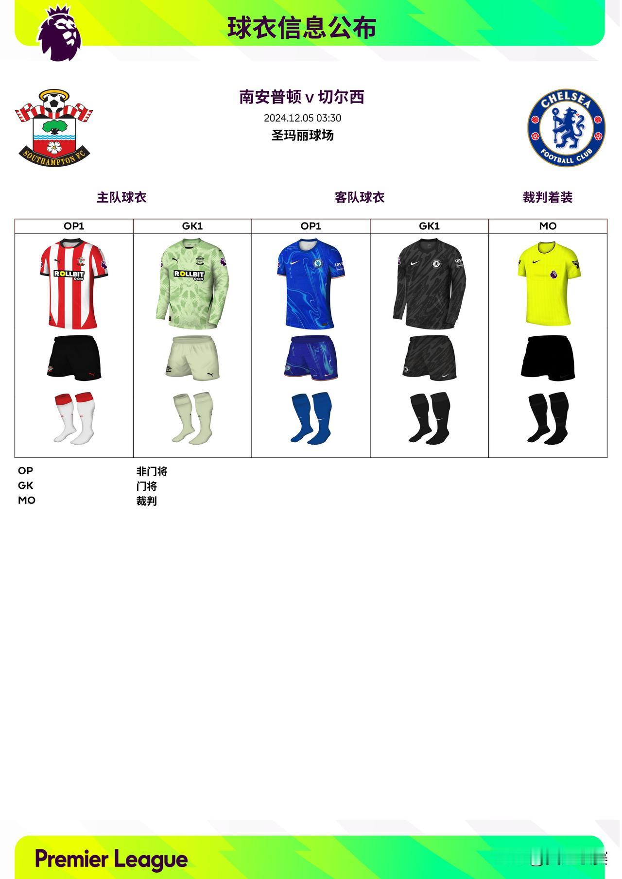 2024/25赛季英超联赛第14轮球衣信息: ◉ 焦点战——阿森纳迎战曼联,红魔身穿海军蓝客场球衣