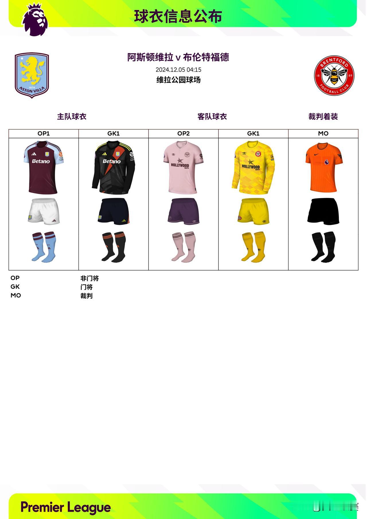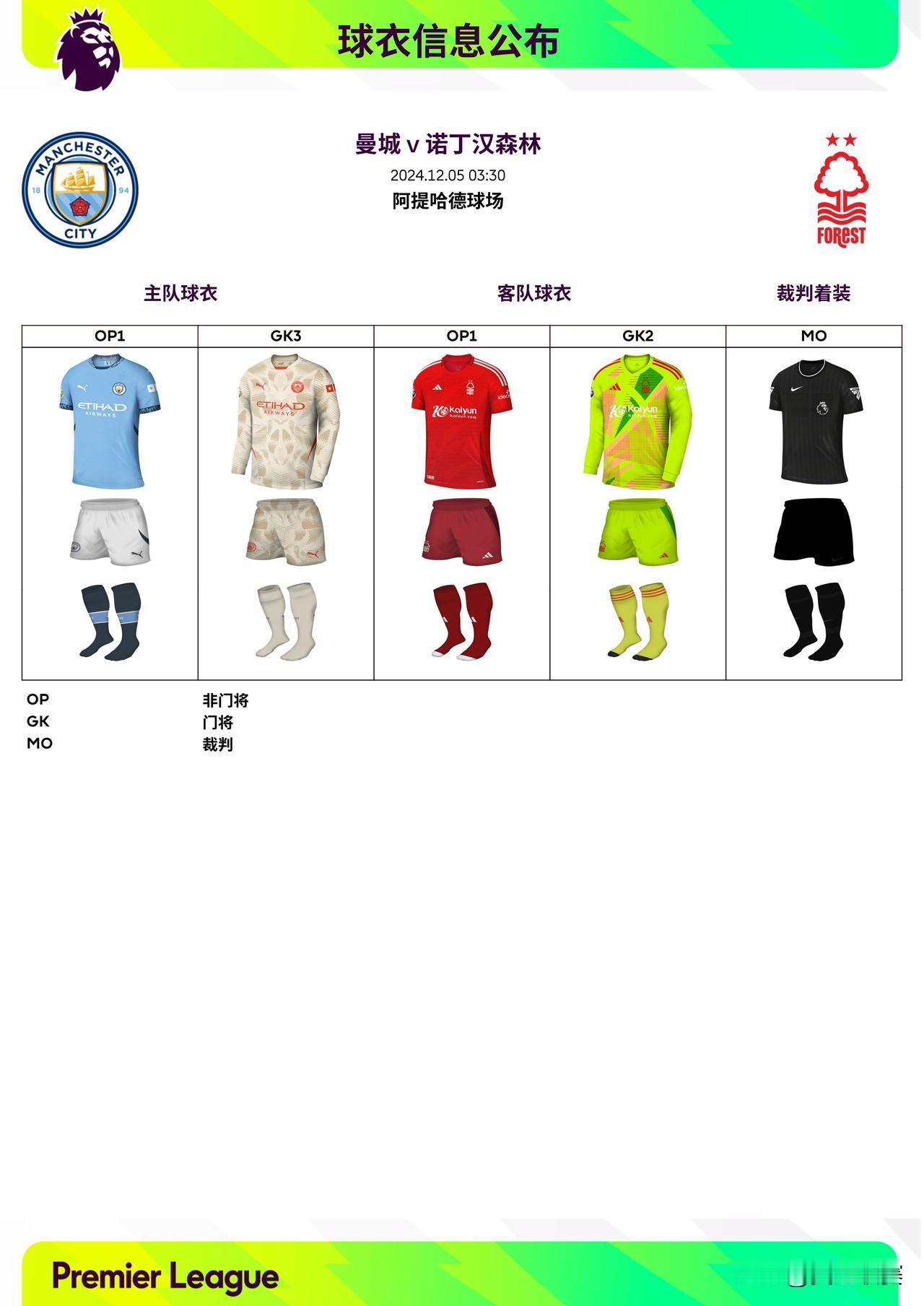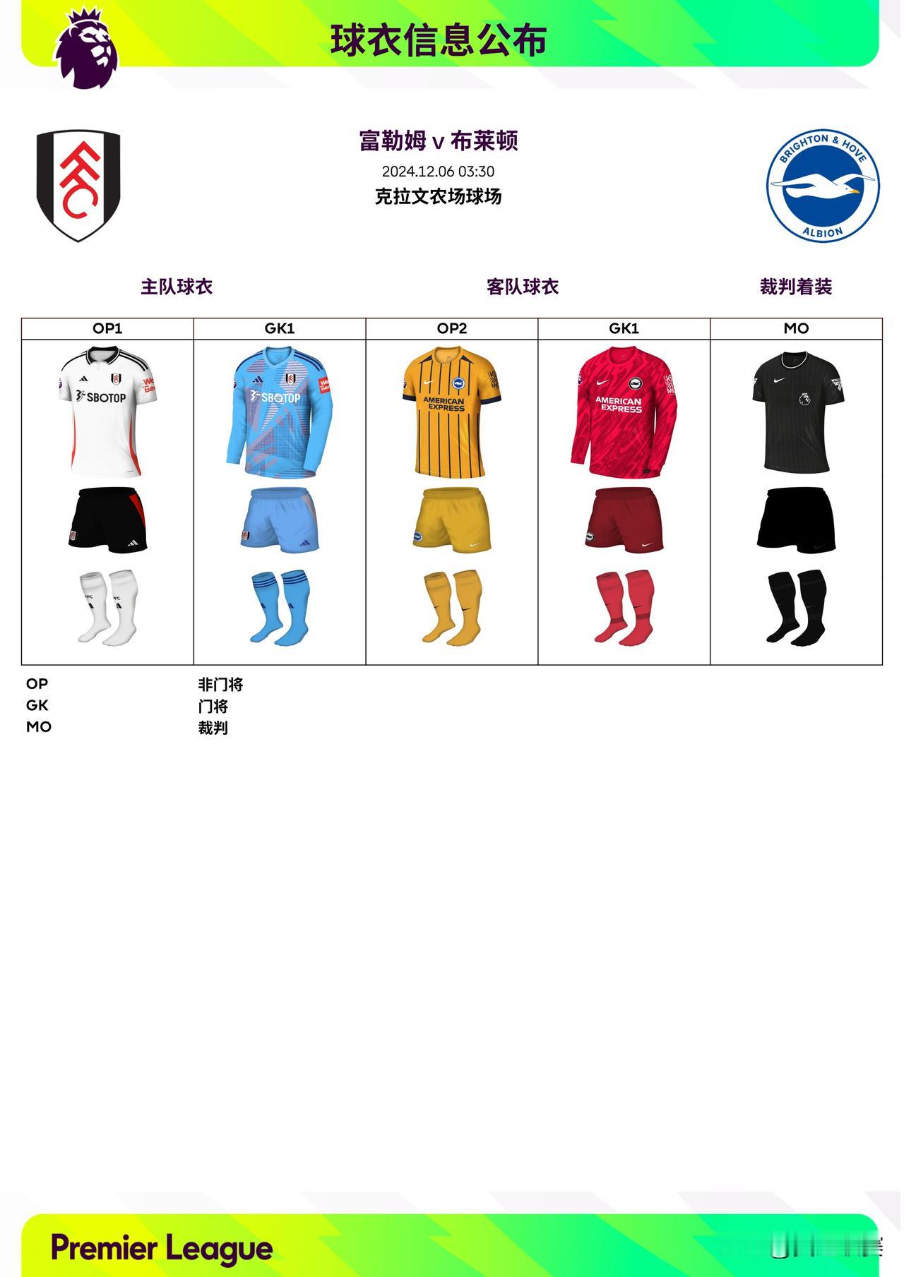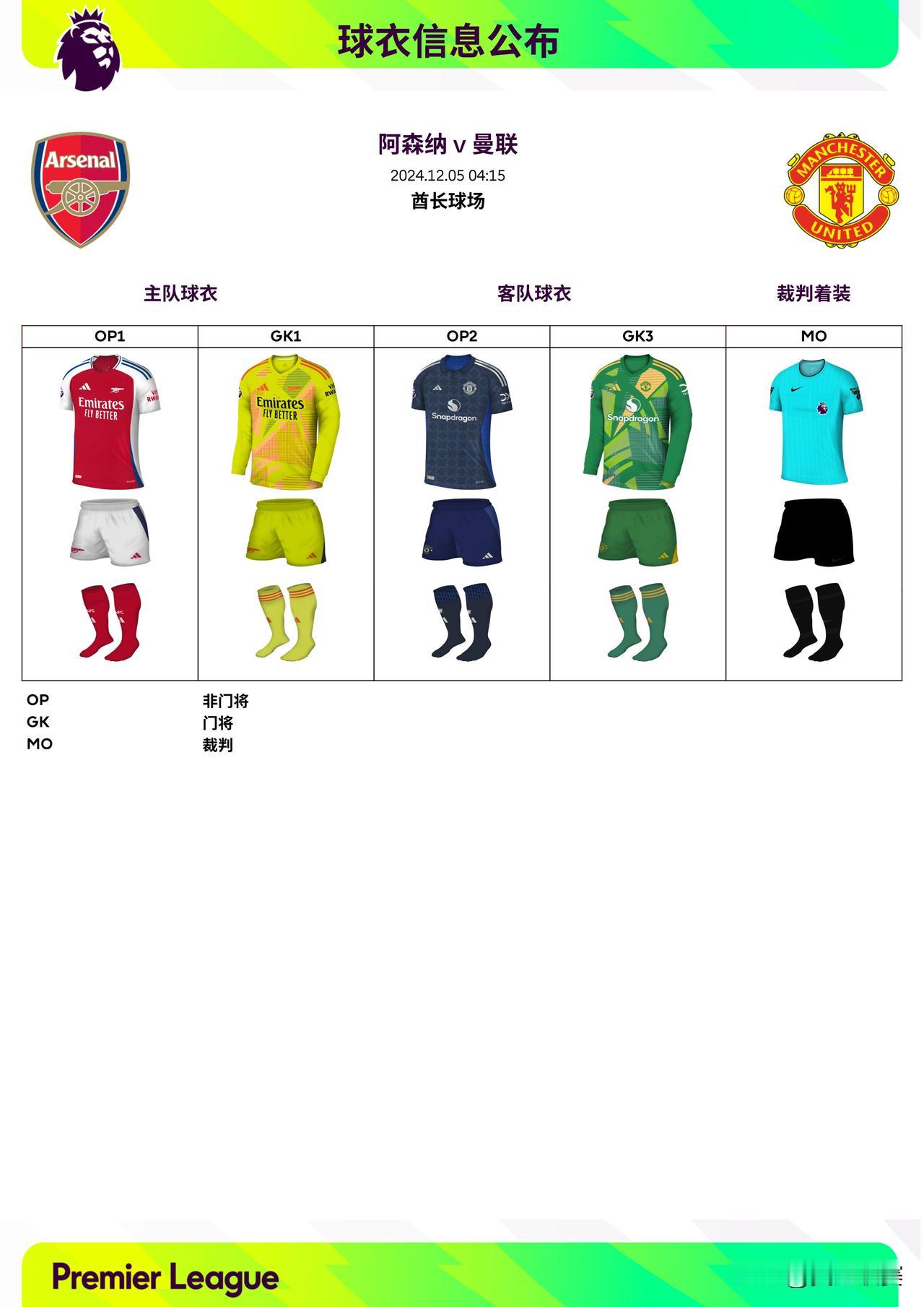 2024/25赛季英超联赛第14轮球衣信息: ◉焦点战——阿森纳迎战曼联,红