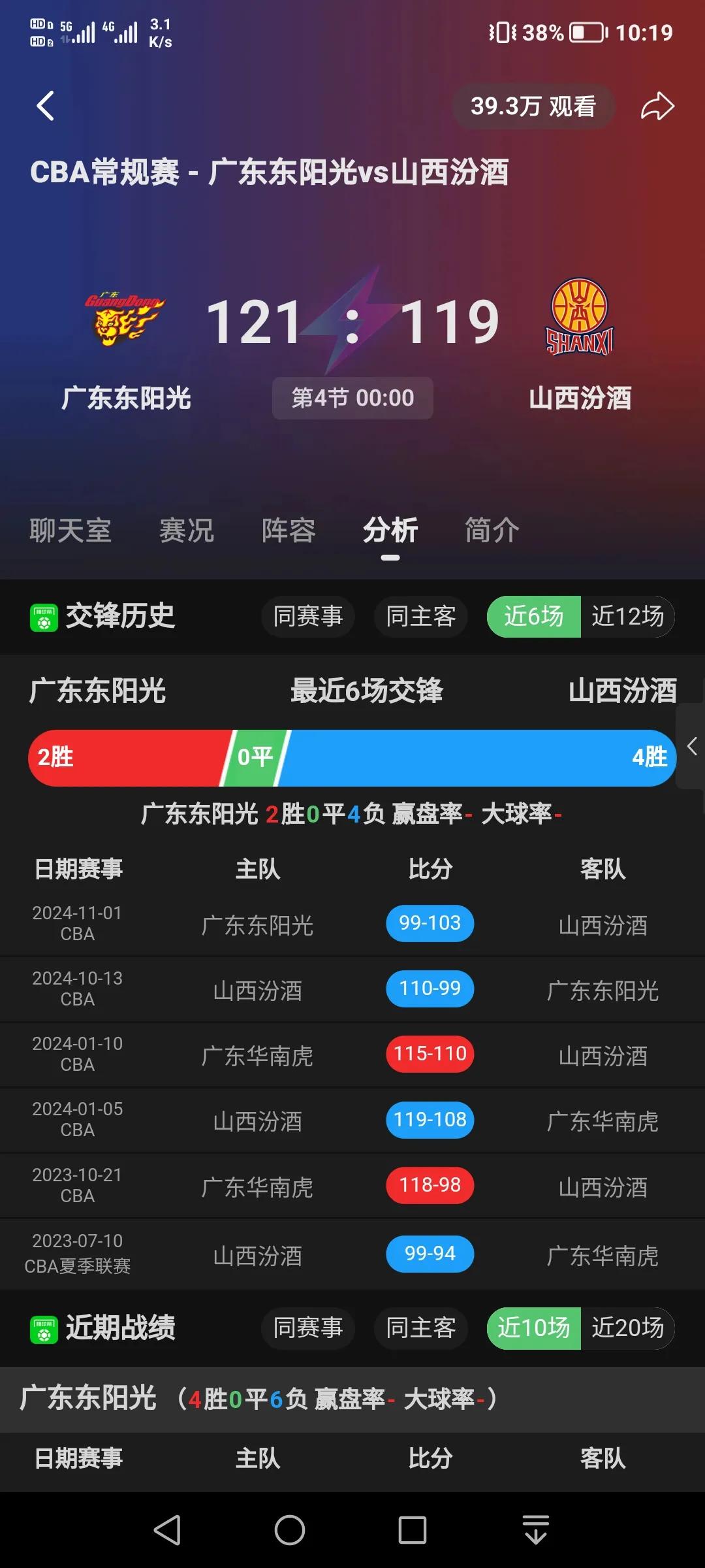 2024年12月3日,CBA常规赛第二轮比赛,广东东阳光121-119击败山西汾酒,取得胜利没有喝山西汾酒了!加油广东东阳光💪💪💪✊✊✊