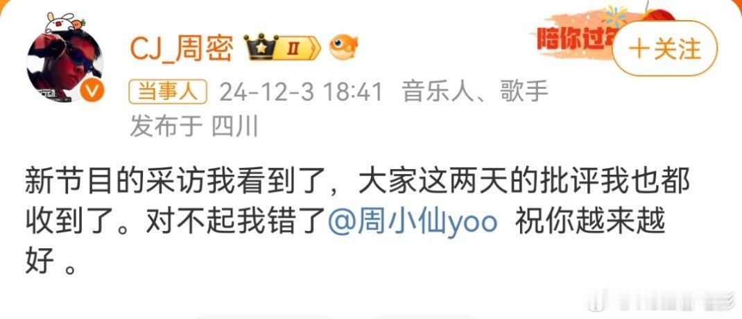 周密向周芯竹道歉 闹剧结束了,别再给彼此找难堪了