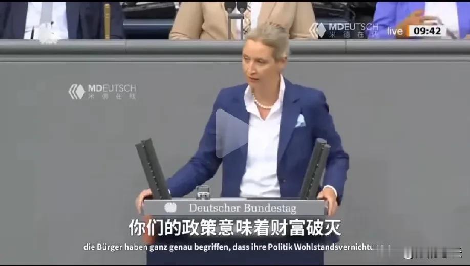 “朔尔茨先生,你就是德国衰败之总理,你们的政策意味着财富破灭!”铁娘子魏德尔确实敢说,而且是当着朔尔茨的面,在大庭广众之下。 看来朔尔茨的时间不多了,之前默克尔也在接受采访时说过:“德国和美国不同,在对中俄关系上要有自己的立场,要确保德国利益不受影响!” 虽然没有指名道姓,但这明显是在告诉朔尔茨,你们现在过于亲美的方向是错的,不能这样干下去了,我好不容易积累起来的优势,已经被你们三年时间败光了。 真有点恨铁不成钢的感觉,估计心里确实很郁闷,德国现在不仅能源短缺,失业率攀升,而且大量的中小企业倒闭,这估计是默克尔完全没有预料到的。 (图片源于网络,侵联删)