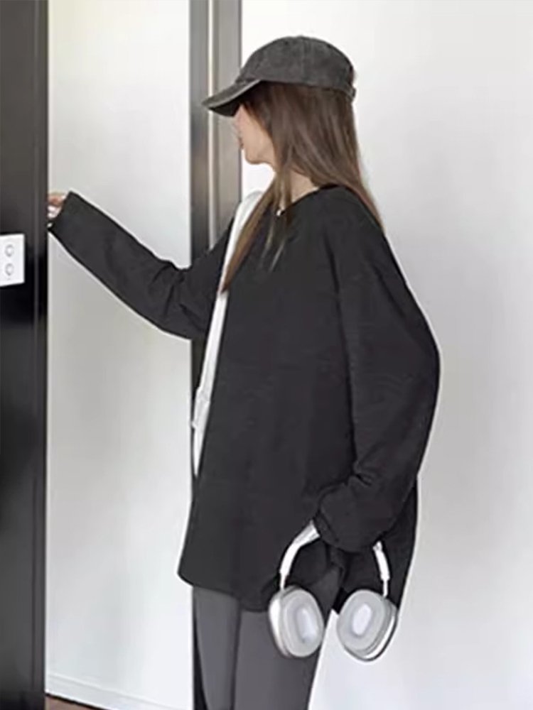 法式黑色蕾丝v领长袖T恤女冬季高级感内搭