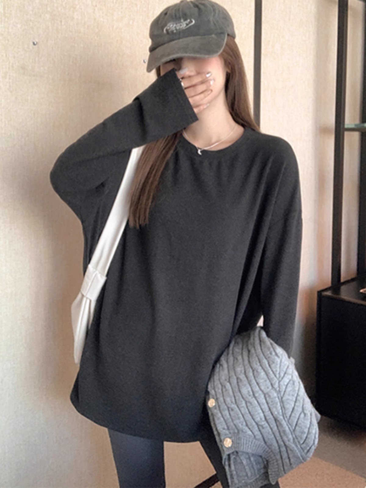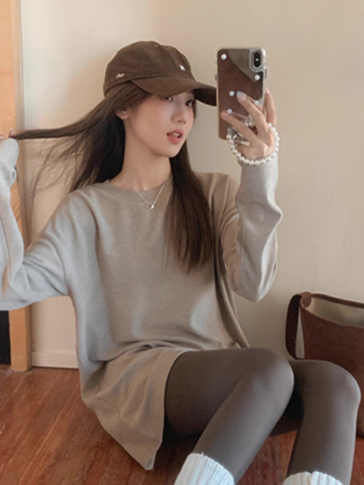 圆领澳绒加厚打底衫女冬季内搭中长款上衣