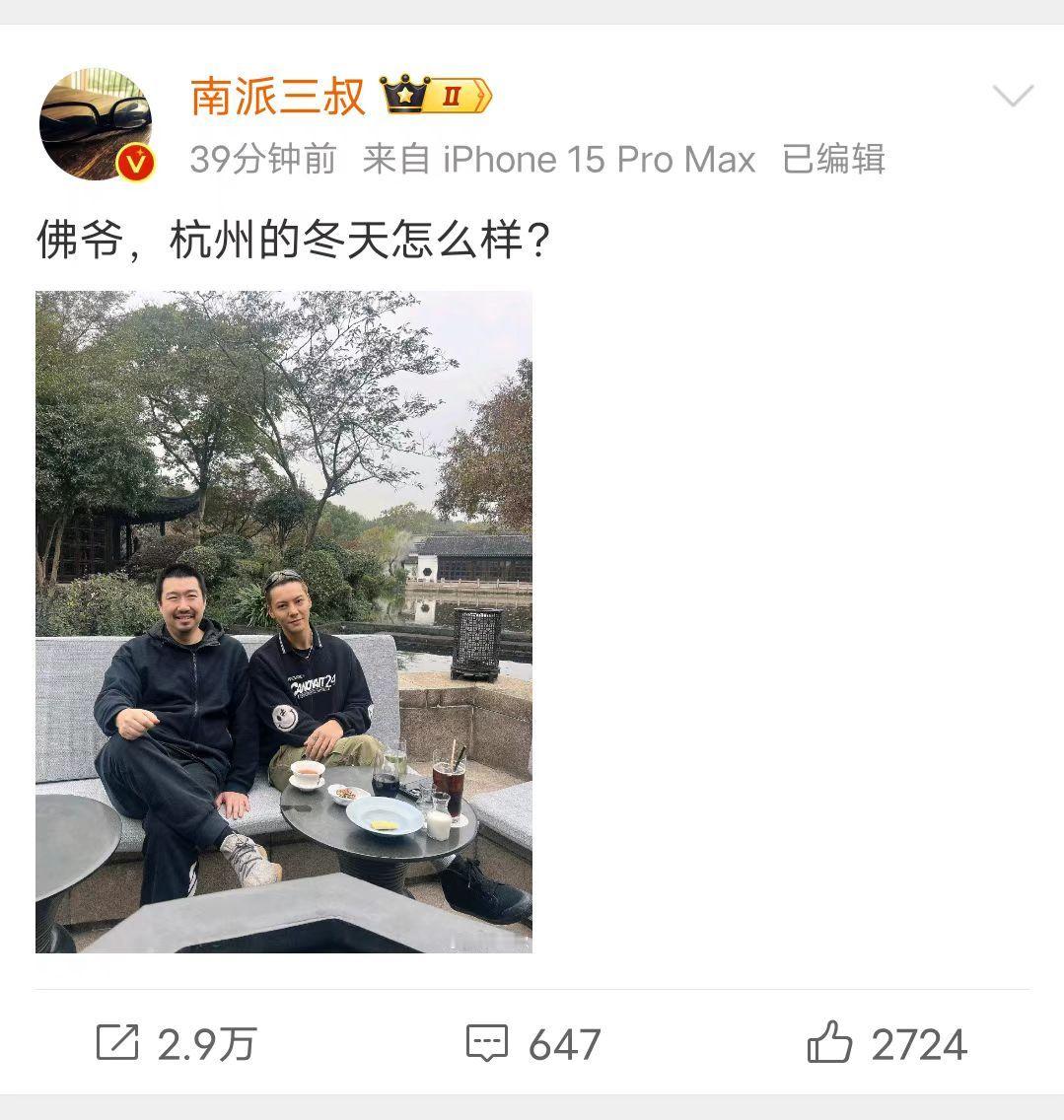 南派三叔晒与陈伟霆合照 南派三叔陈伟霆重聚 南派三叔晒与陈伟霆合照,并配文:佛爷,杭州的冬天怎么样?”网友表示:“老九门2终于要来了吗!”