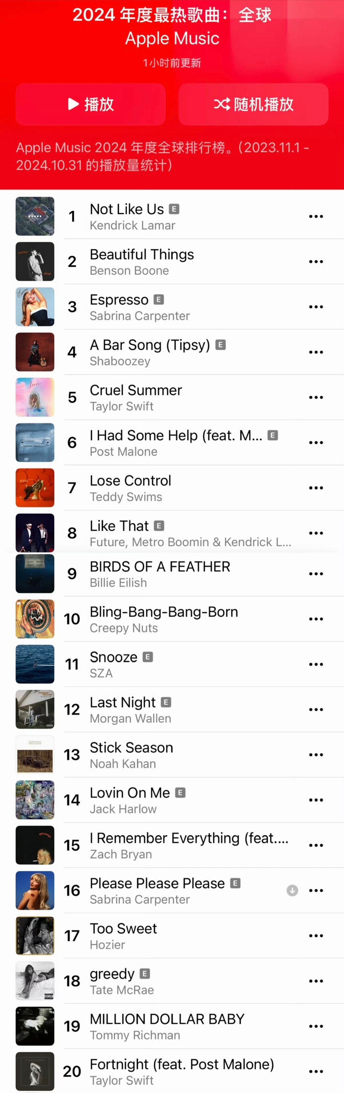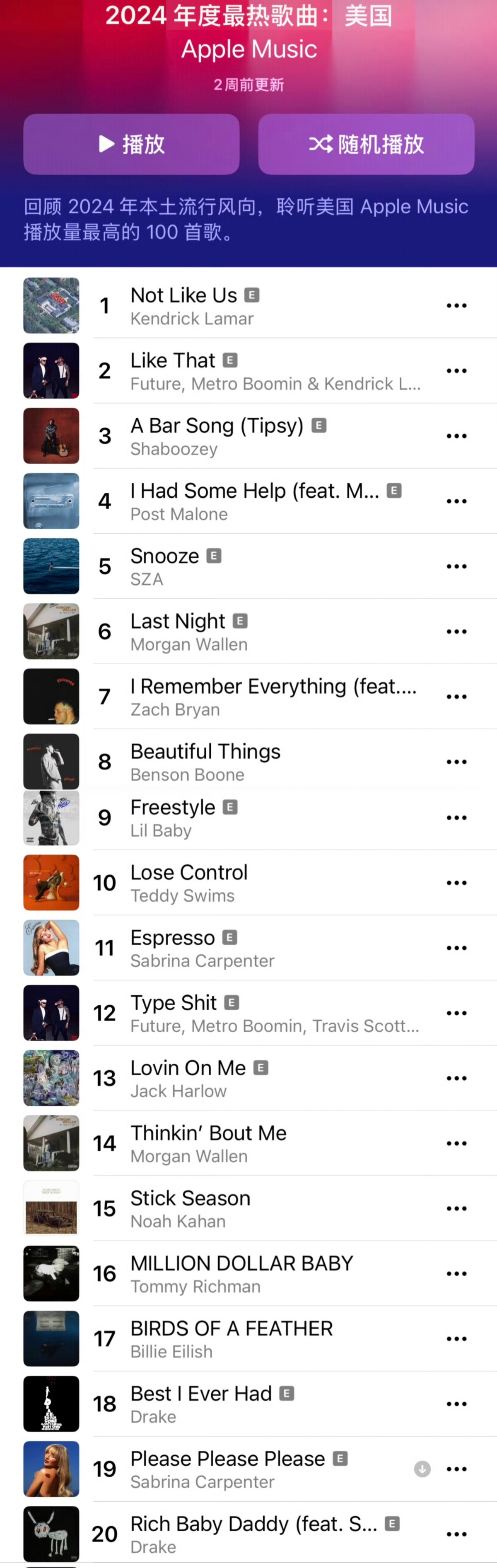 APPLE MUSIC年度最热歌曲 华语乐坛,一声叹息… 全都是二十年前的歌手,几乎都是二十年前的歌。