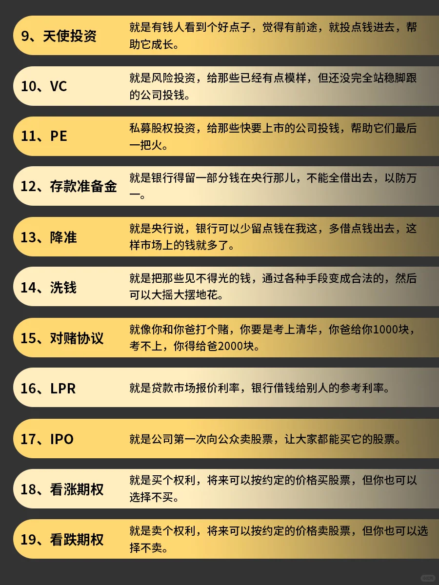 ✅杠杆:就是借钱来投资,用别人的钱来赚自己的钱,但风险也大。