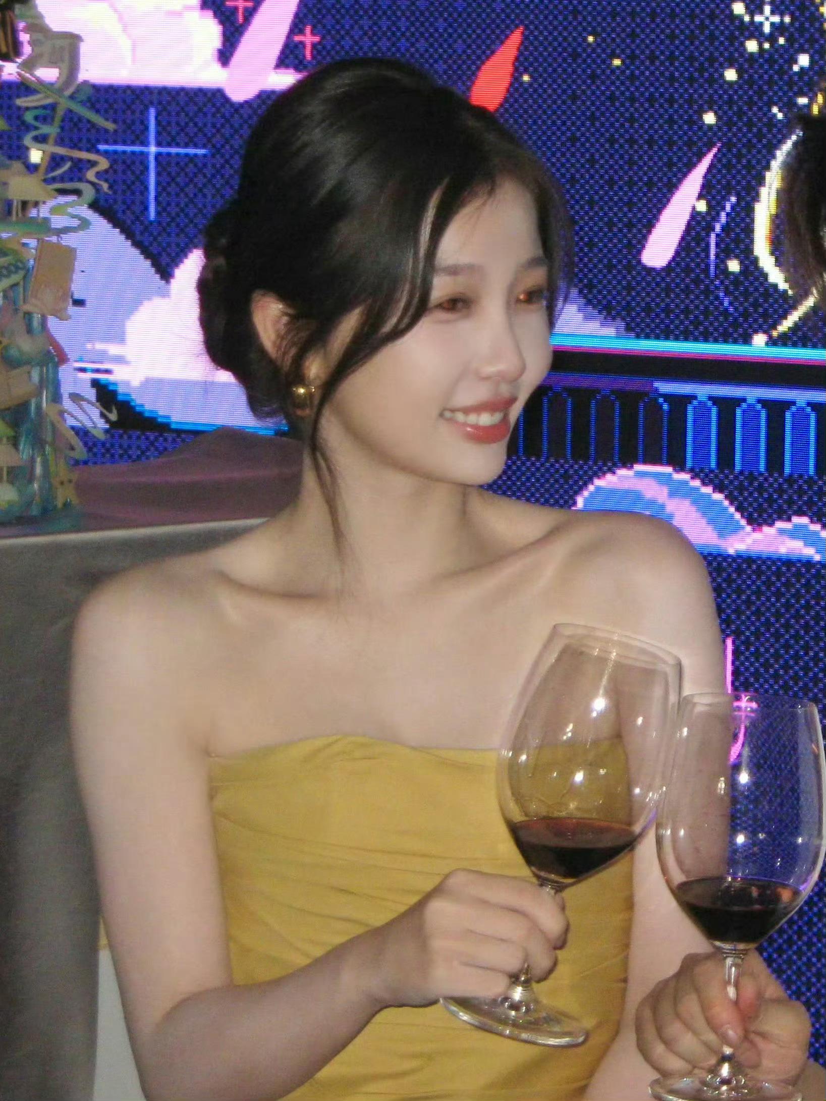 刘亦菲喝醉酒微醺的状态被拍到,脸上已经泛起了红晕,被拍到后眼神微怒