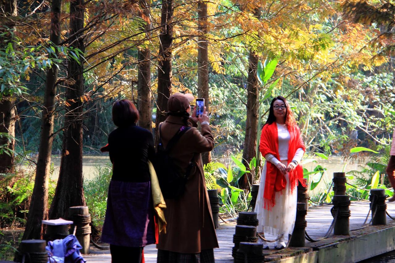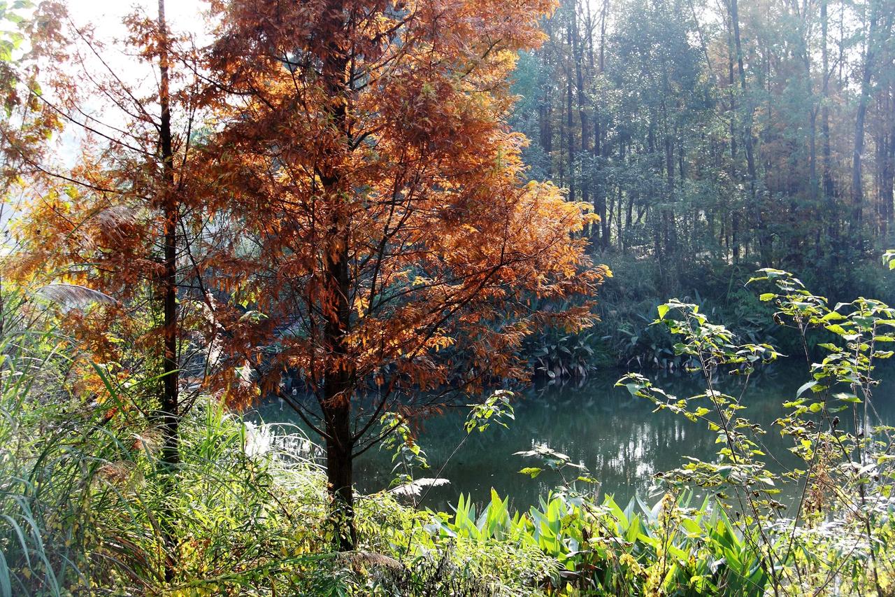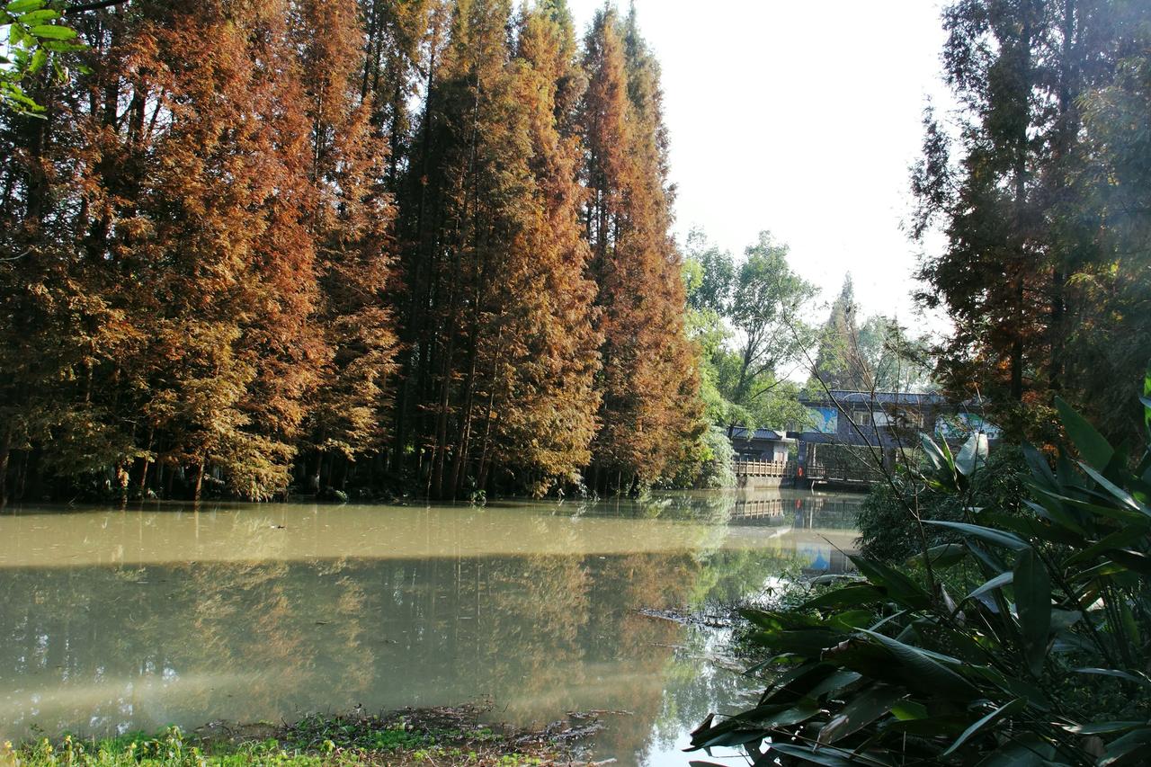 【桤木河湿地觅水杉】 20241204 29日12时离开板桥红枫林,前往桤木河湿地。在白香路和崇王路交叉路口的一满田园餐厅吃午饭后,就去沿着崇王路徒步去了桤木河湿地。据网上介绍,这里水杉很漂亮。 好多年没来这里了,变化真大!记得曾经是个不大的小公园,现在简直打不到方向了。没有走公园的南门,直接走旅游公路走到了桤木河边。沿着河走了好久,也没看到漂亮风景和水杉。事先没做好功课,不知道在湿地里要看什么景点,该怎么走。 到现场后,走在林子中间的小路上,就不知道方向了。看路边的园区地图牌,也根本看不明白。问了游客,才走到了水闸那里,总算找到了主要景点,就是水杉林和栈道。 栈道弯来绕去,水杉不够粗壮,河水有点浑浊。树不红,光不亮,雾气重,照片朦朦胧胧,好在还看得清楚。此地风景和沙河边白鹭湾的水杉完全不一样。地势不开阔,环境太复杂,水杉不靓丽,照片没气势。 走完这段栈道,再没有看到更多的风景了。虽说还有些地方没走到,也没心情去看了。从游客中心那里出景区,就是高速入口,就地等车来,回成都。 唉,心心念念的桤木河湿地,时隔多年又重游,今后不会再来了。