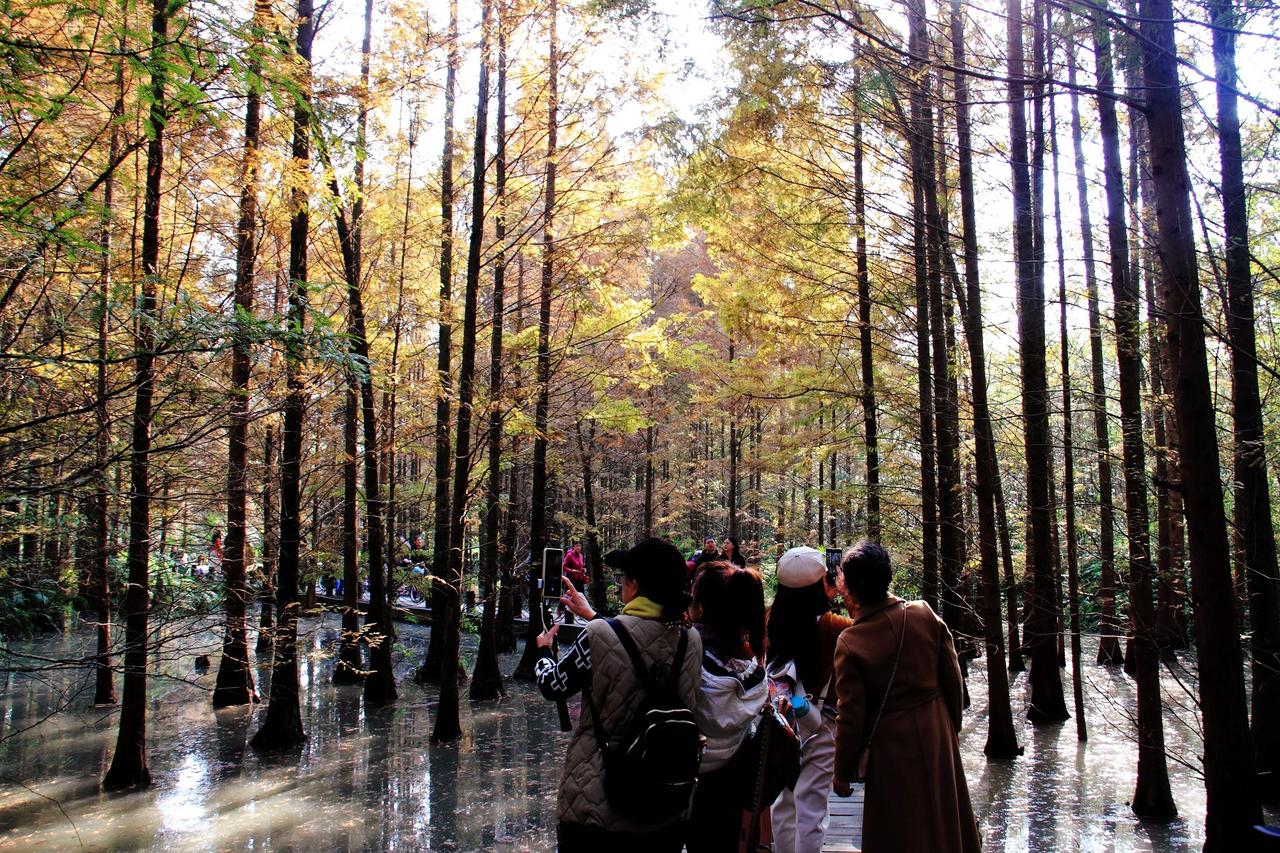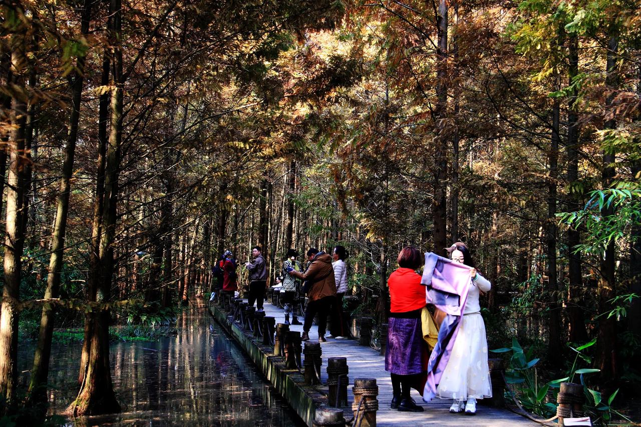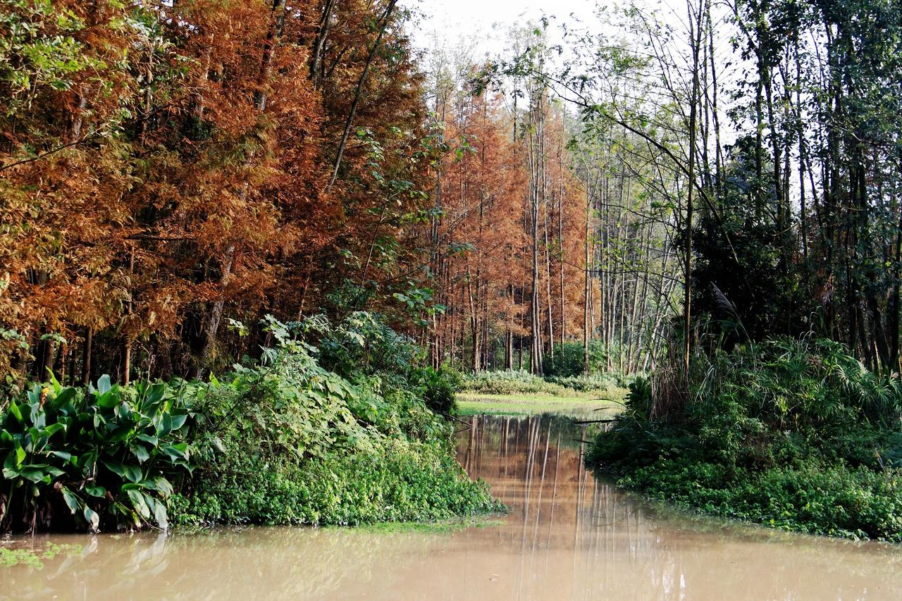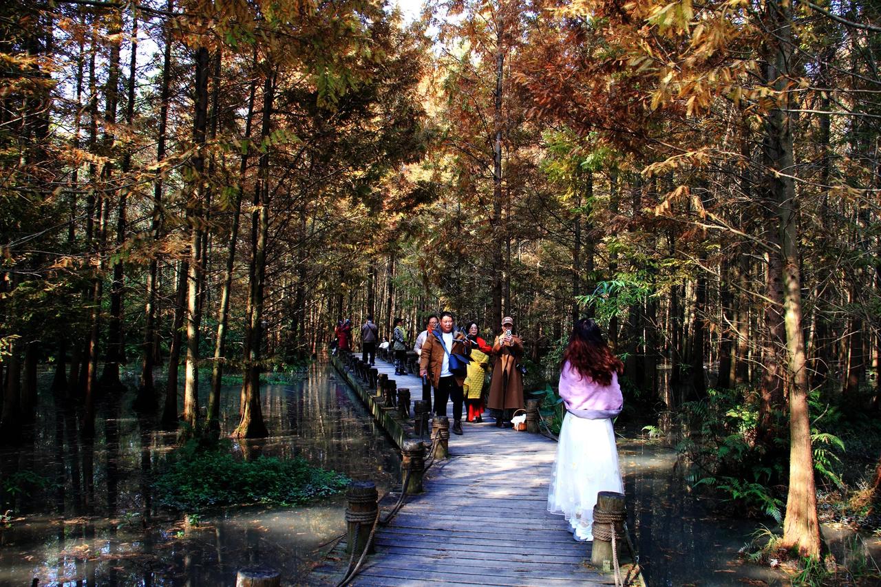 【桤木河湿地觅水杉】 20241204 29日12时离开板桥红枫林,前往桤木河湿地。在白香路和崇王路交叉路口的一满田园餐厅吃午饭后,就去沿着崇王路徒步去了桤木河湿地。据网上介绍,这里水杉很漂亮。 好多年没来这里了,变化真大!记得曾经是个不大的小公园,现在简直打不到方向了。没有走公园的南门,直接走旅游公路走到了桤木河边。沿着河走了好久,也没看到漂亮风景和水杉。事先没做好功课,不知道在湿地里要看什么景点,该怎么走。 到现场后,走在林子中间的小路上,就不知道方向了。看路边的园区地图牌,也根本看不明白。问了游客,才走到了水闸那里,总算找到了主要景点,就是水杉林和栈道。 栈道弯来绕去,水杉不够粗壮,河水有点浑浊。树不红,光不亮,雾气重,照片朦朦胧胧,好在还看得清楚。此地风景和沙河边白鹭湾的水杉完全不一样。地势不开阔,环境太复杂,水杉不靓丽,照片没气势。 走完这段栈道,再没有看到更多的风景了。虽说还有些地方没走到,也没心情去看了。从游客中心那里出景区,就是高速入口,就地等车来,回成都。 唉,心心念念的桤木河湿地,时隔多年又重游,今后不会再来了。