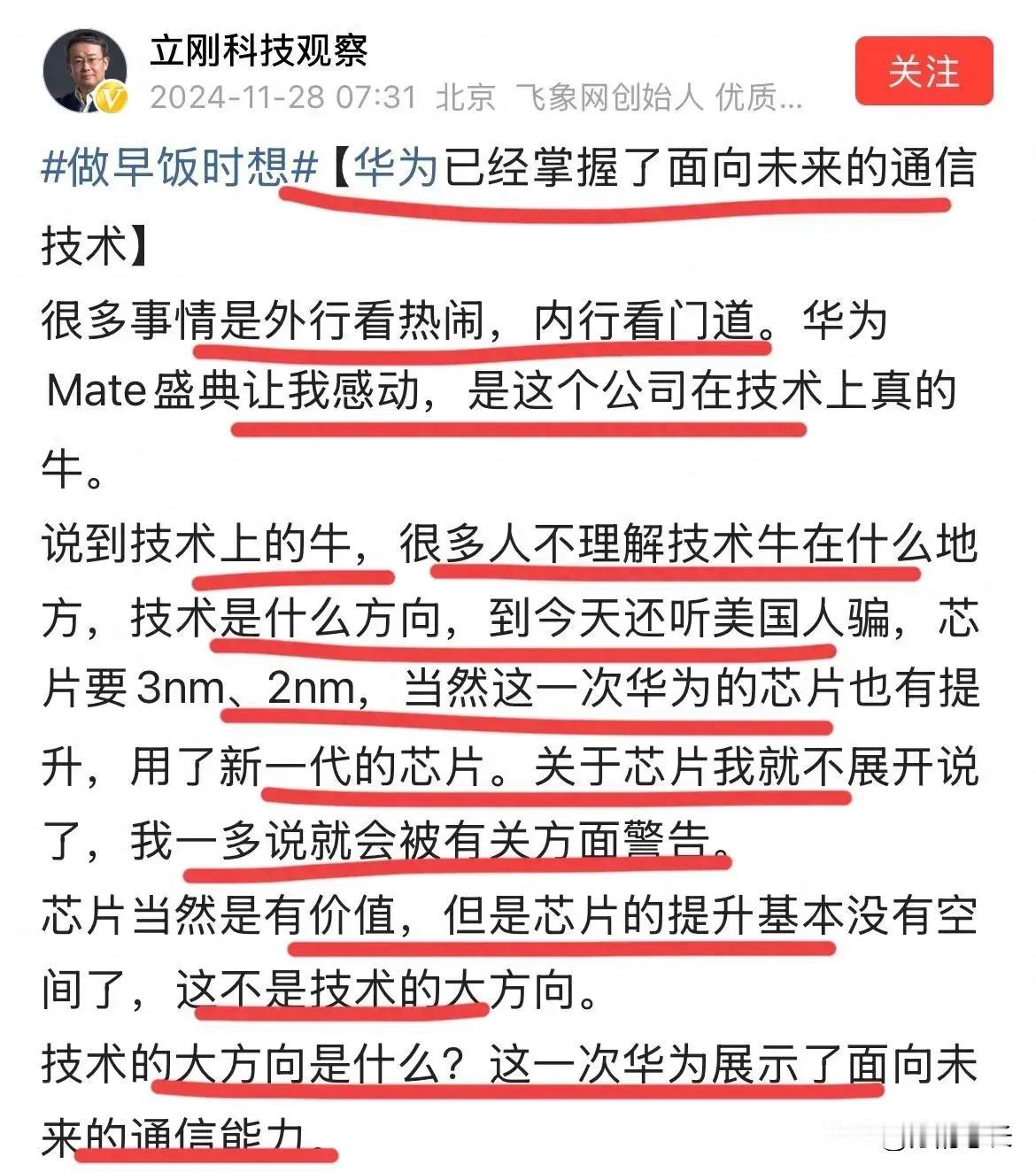 华为自研自产芯片,一帮人像吃了老鼠屎一样各种难受。当华为被别人按在地上摩擦的时候,他们却像吃了蜜蜂屎一样开心,这是一种病态。 数码博主爆料华为已经实现芯片制造的重大突破,意味着台积电、美国的制裁彻底失败了,而且这一消息项立刚也表达过,他的意思是有些东西只是不能说而已,实际上华为现在能做到的事情比我们看到的多得多。 环球时报社评说:中国的自强,是对一切遏制的最好回应!这句话很提气。 总有一帮傻帽认为华为的崛起与他3000元的工资有什么关系,华为的崛起有什么好处?甚至还有人说华为崛起就是想割老百姓韭菜。 我想说的是,华为的崛起能让你站着和欧美西方人说话,而不是跪着,这才是支持华为的意义。 支持华为并非一定要买华为产品,鼓励和肯定就是最好的支持,如果你们连这个都做不到,那就是坏。 (图片源于网络,侵联必删)