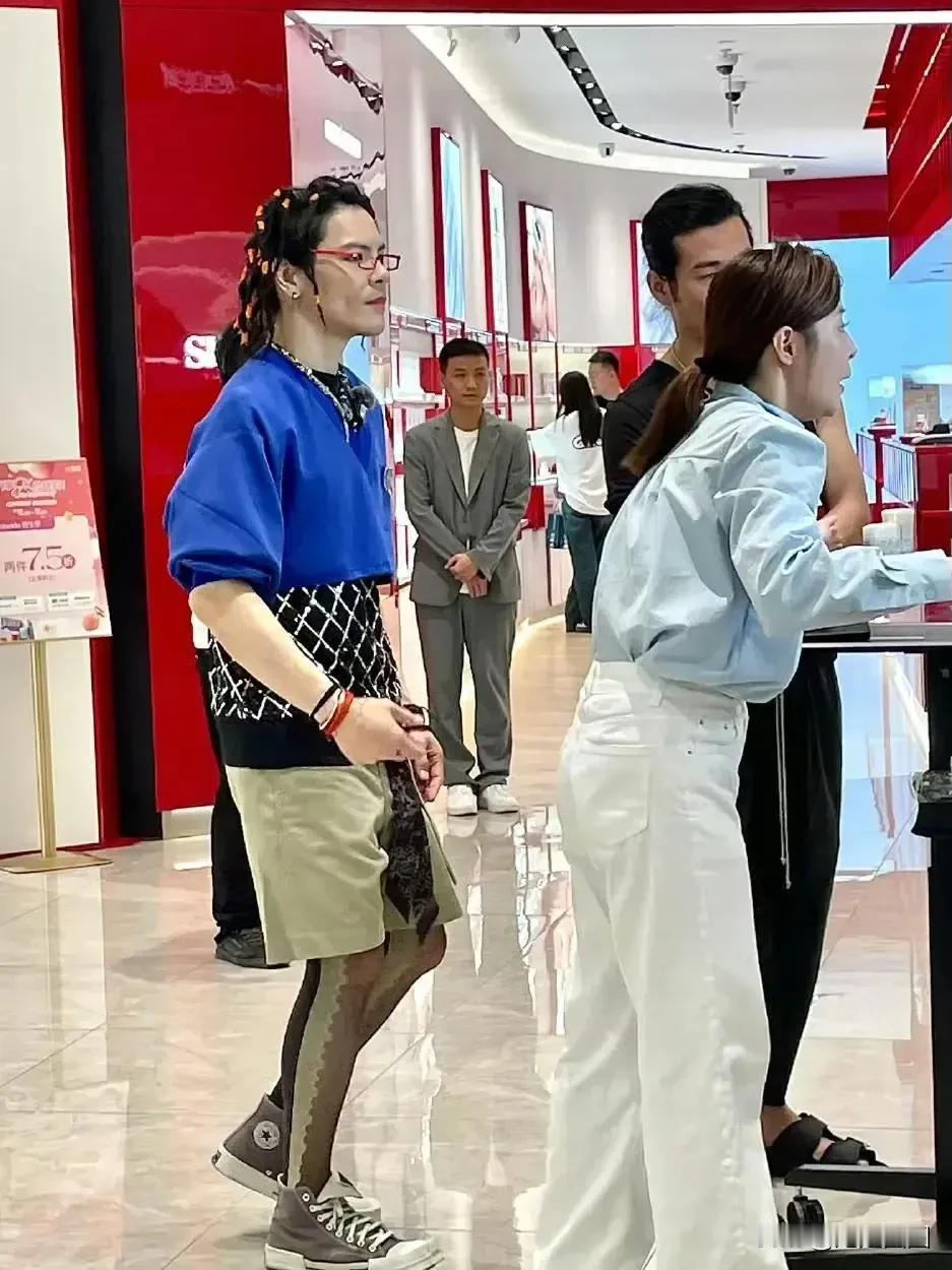吴艳妮在成都穿着短裤大腿看起来很粗壮,表情自信又张扬