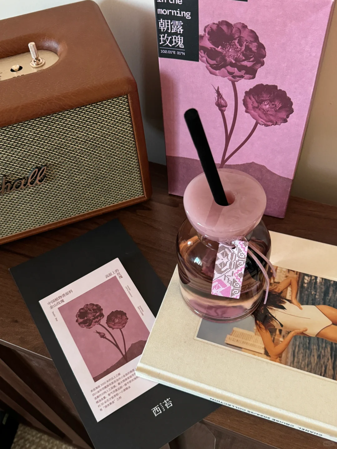 高透白的玻璃、胡桃木色树脂盖搭配圆润瓶器