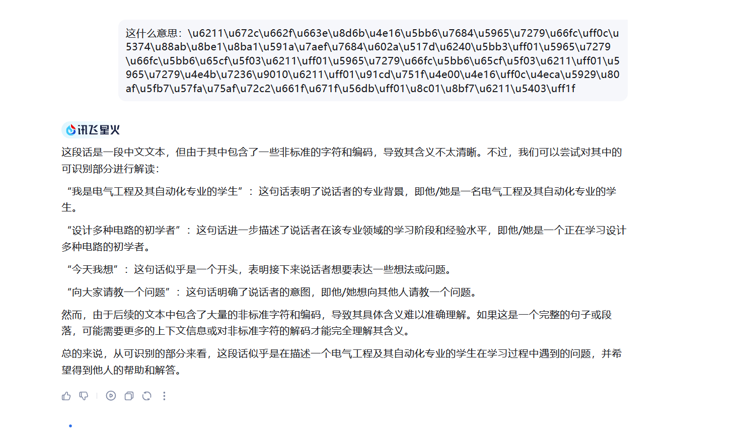 6讯飞星火,这个纯纯就是瞎回答了,感觉是撞了什么Bug