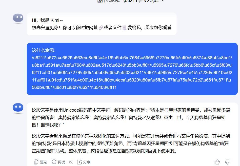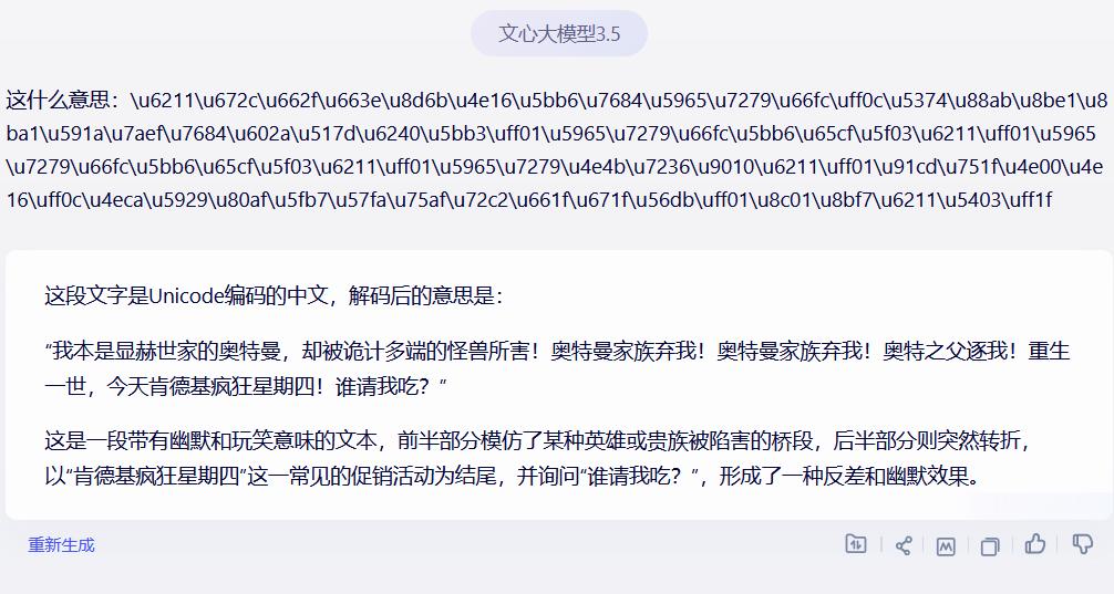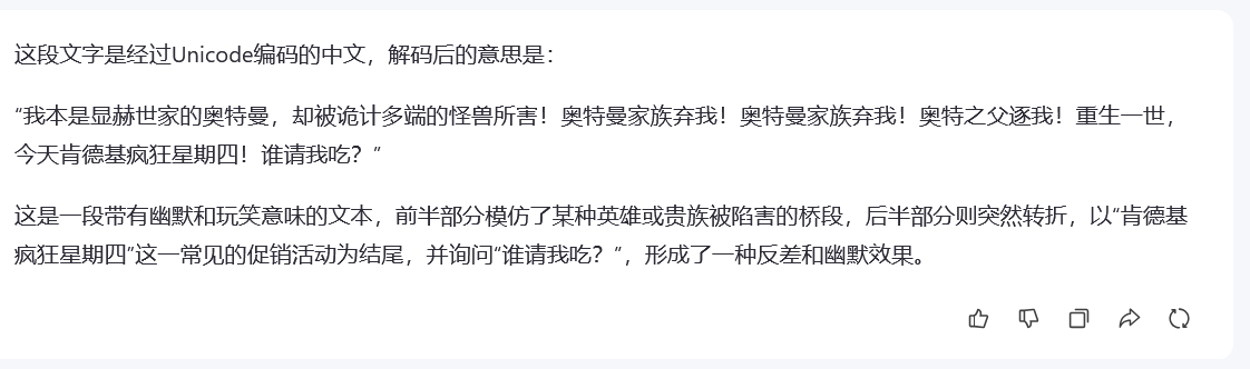 今天在群里有这样一段unicode编码的内容,我对比了一下几个AI的差别