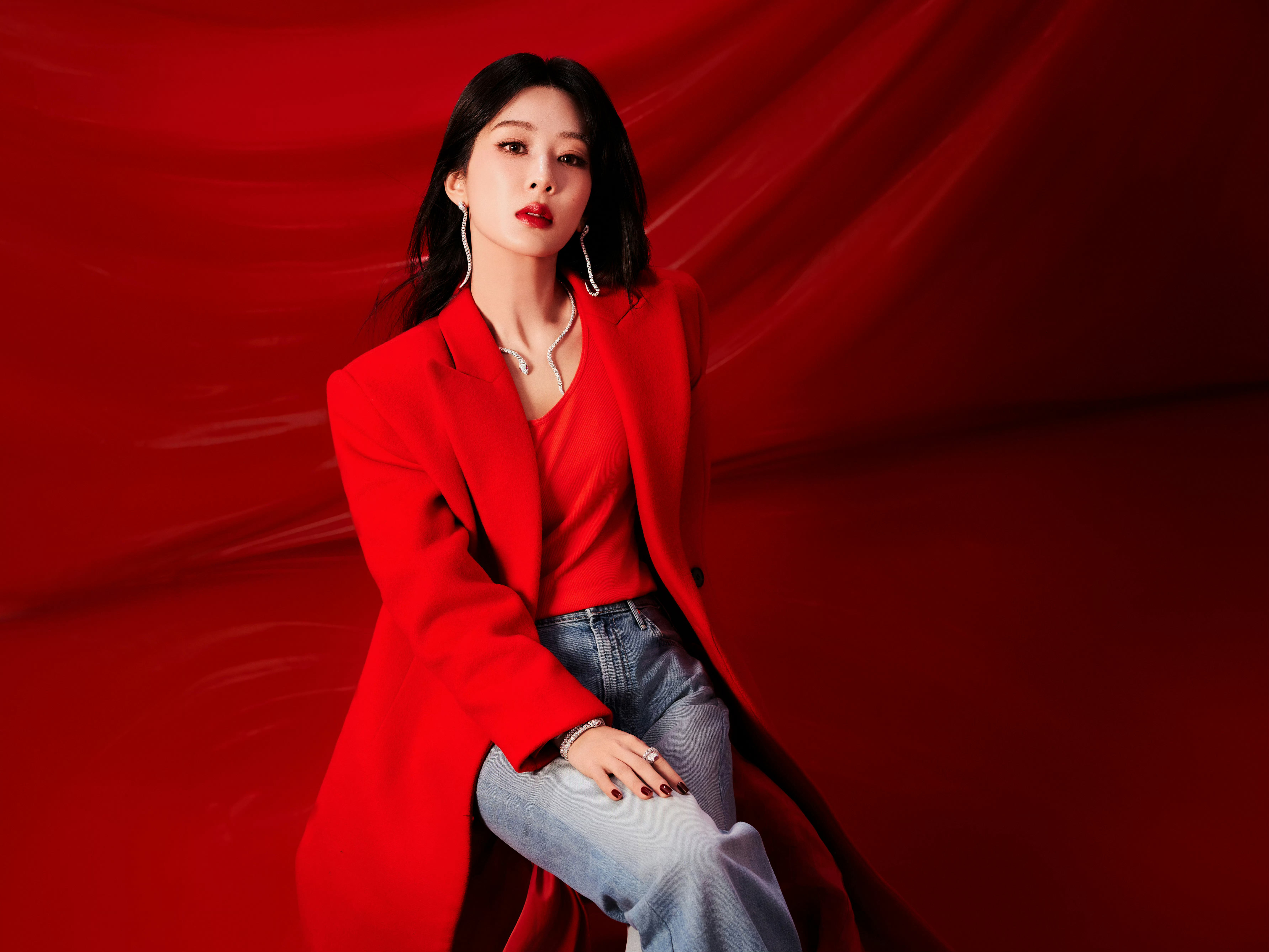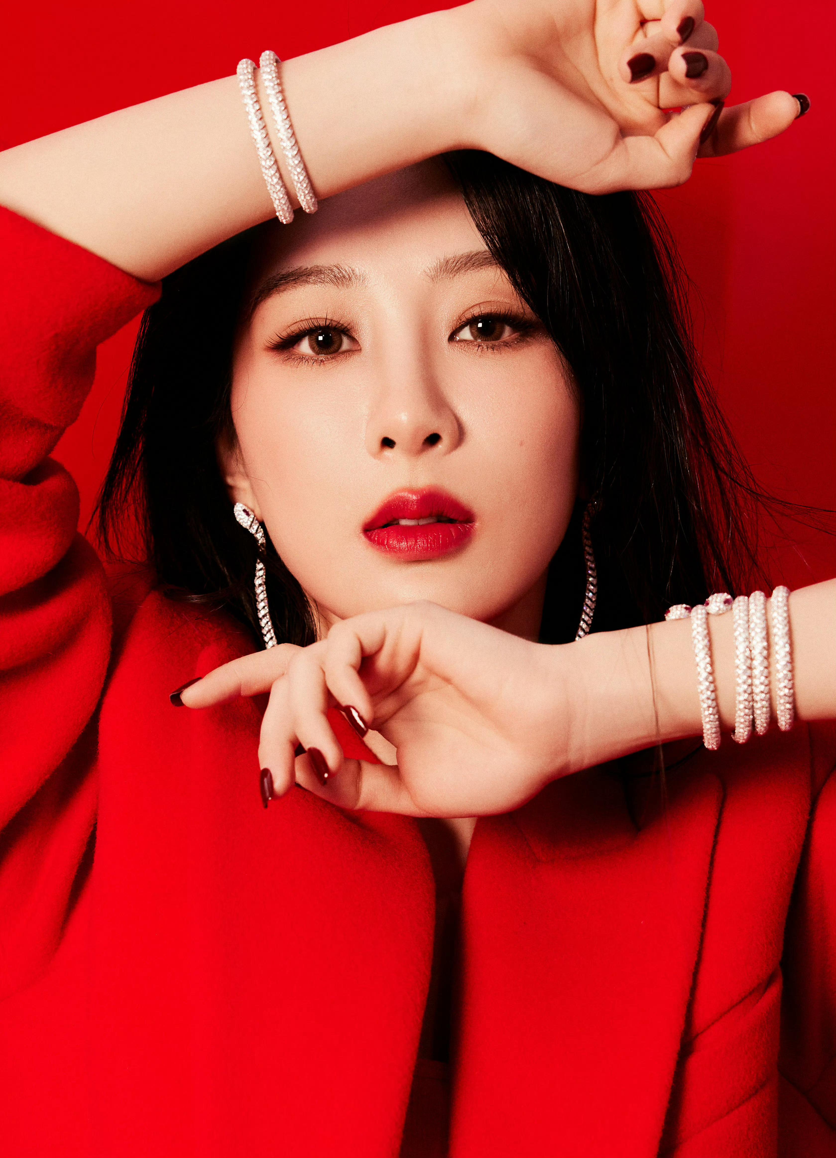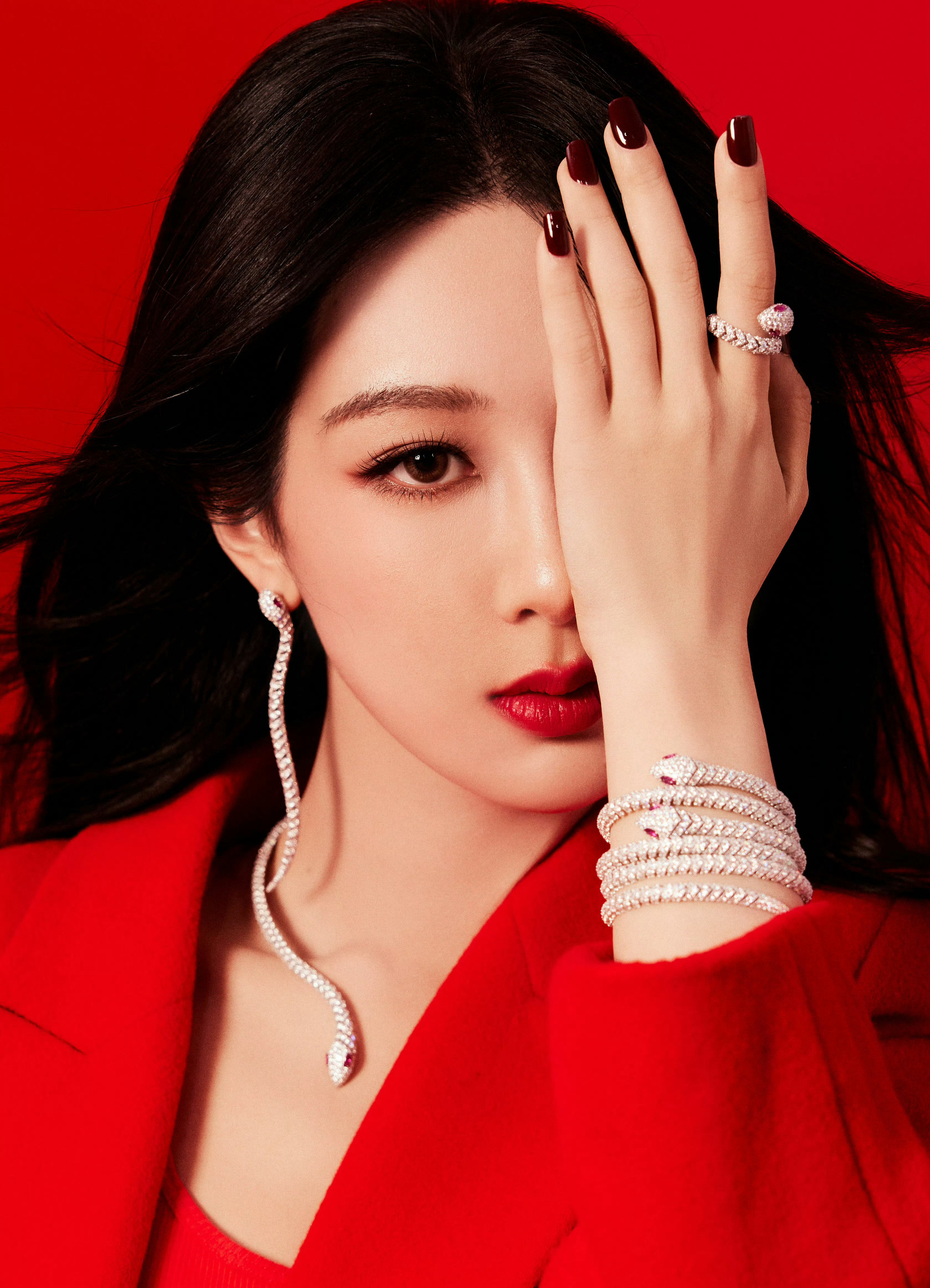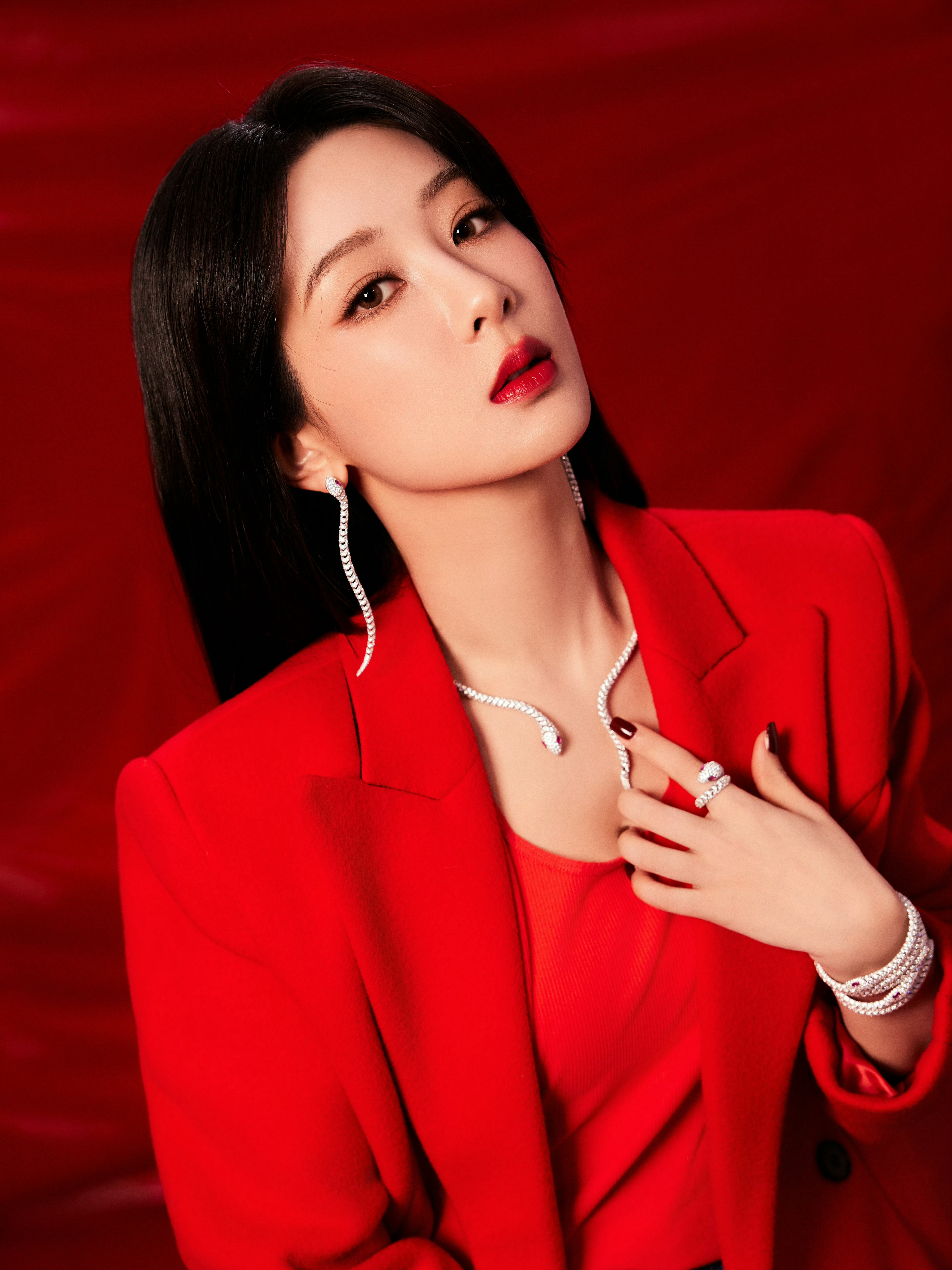 杨紫直播 红衣紫,好明艳动人。柔和的五官和脸型,看着真舒服嘻嘻。