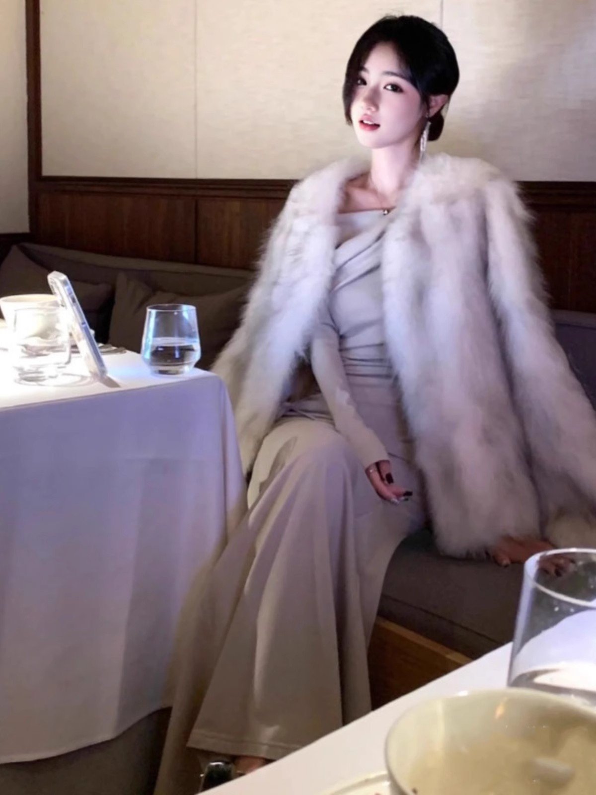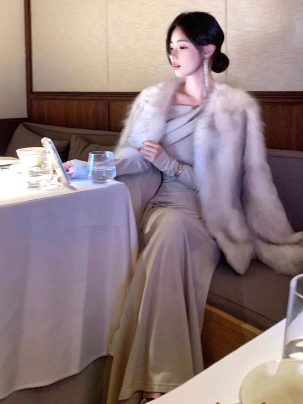 浅色加绒加厚连衣裙女冬季内搭配大衣打底