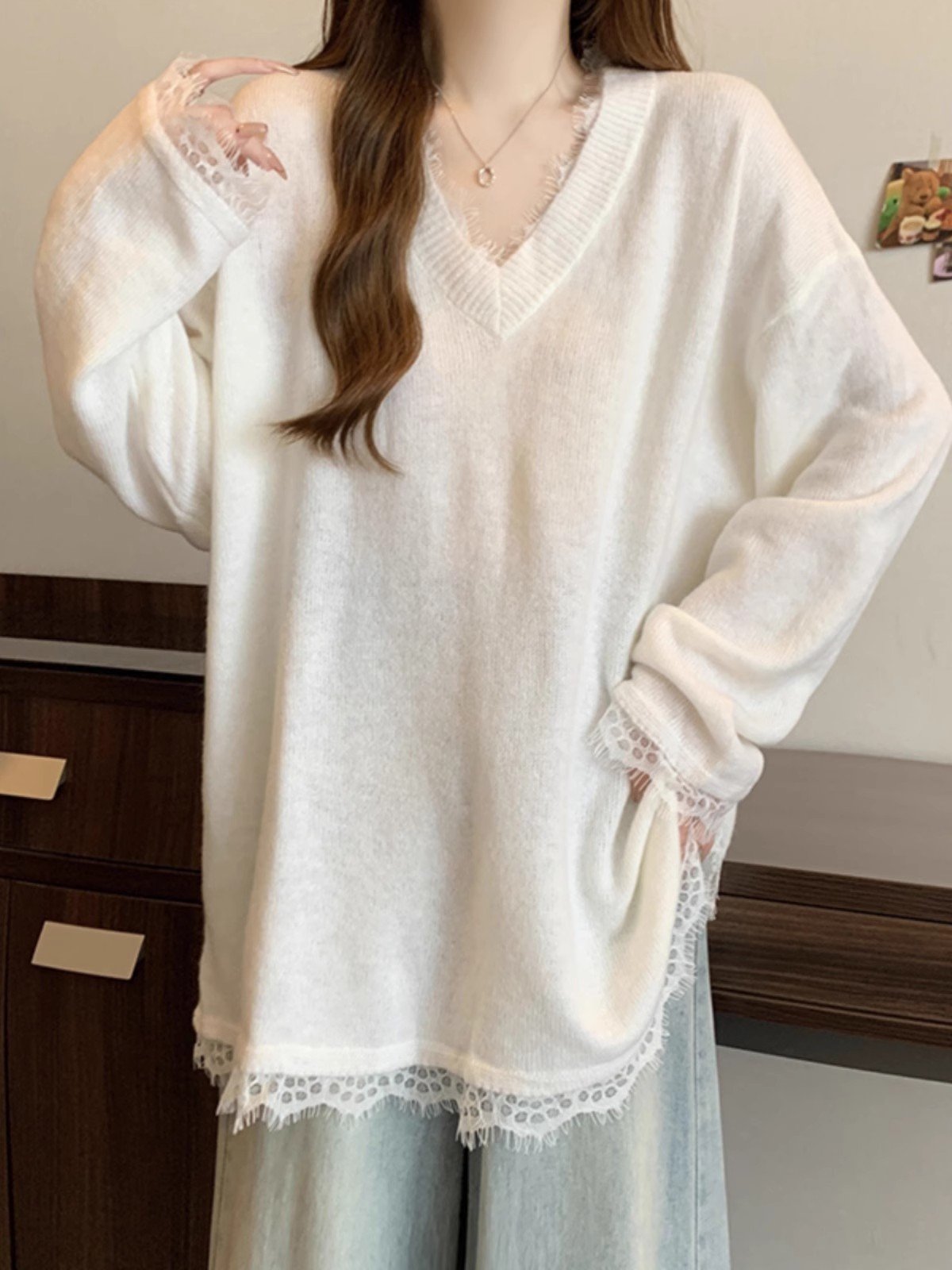 白色蕾丝欧货长袖内搭打底衫女冬季中长款