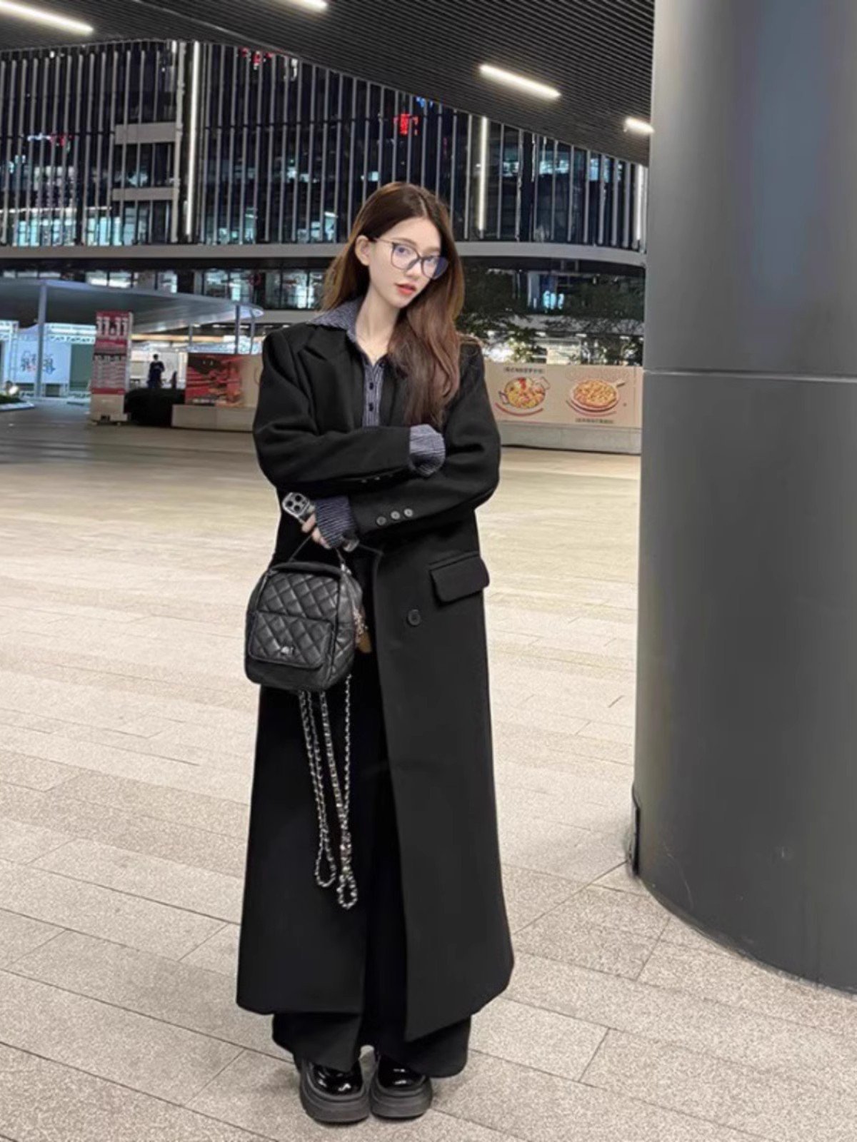 浅色加绒加厚连衣裙女冬季内搭配大衣打底