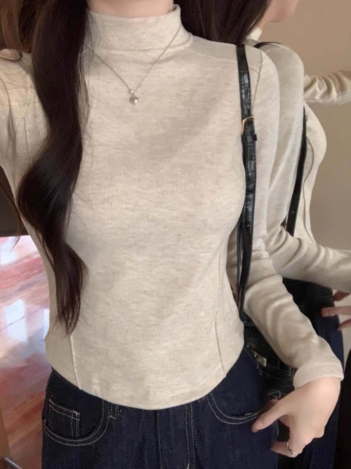 半高领加绒德绒打底衫女冬季内搭加厚保暖