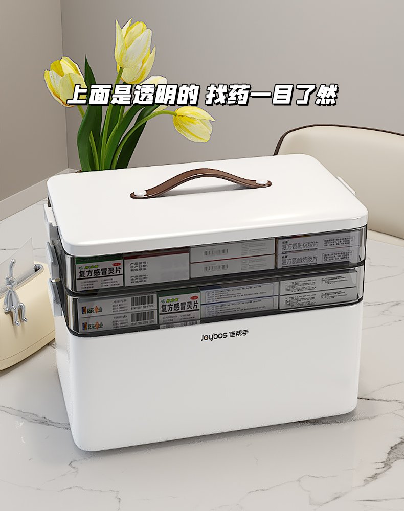 佳帮手大号家庭医药箱,多层药品分类收纳