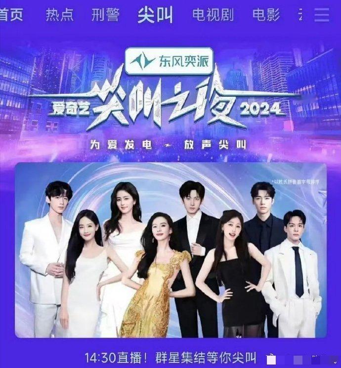 爱奇艺尖叫之夜群星海报站位这站位感觉刘诗诗、白鹿、成毅都在C位呀~