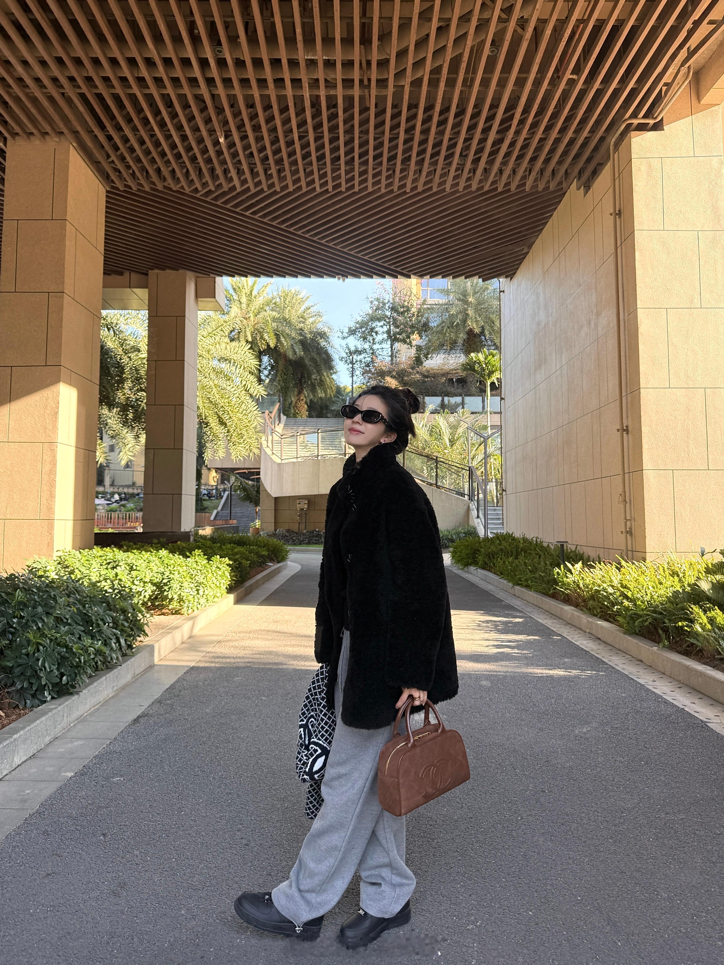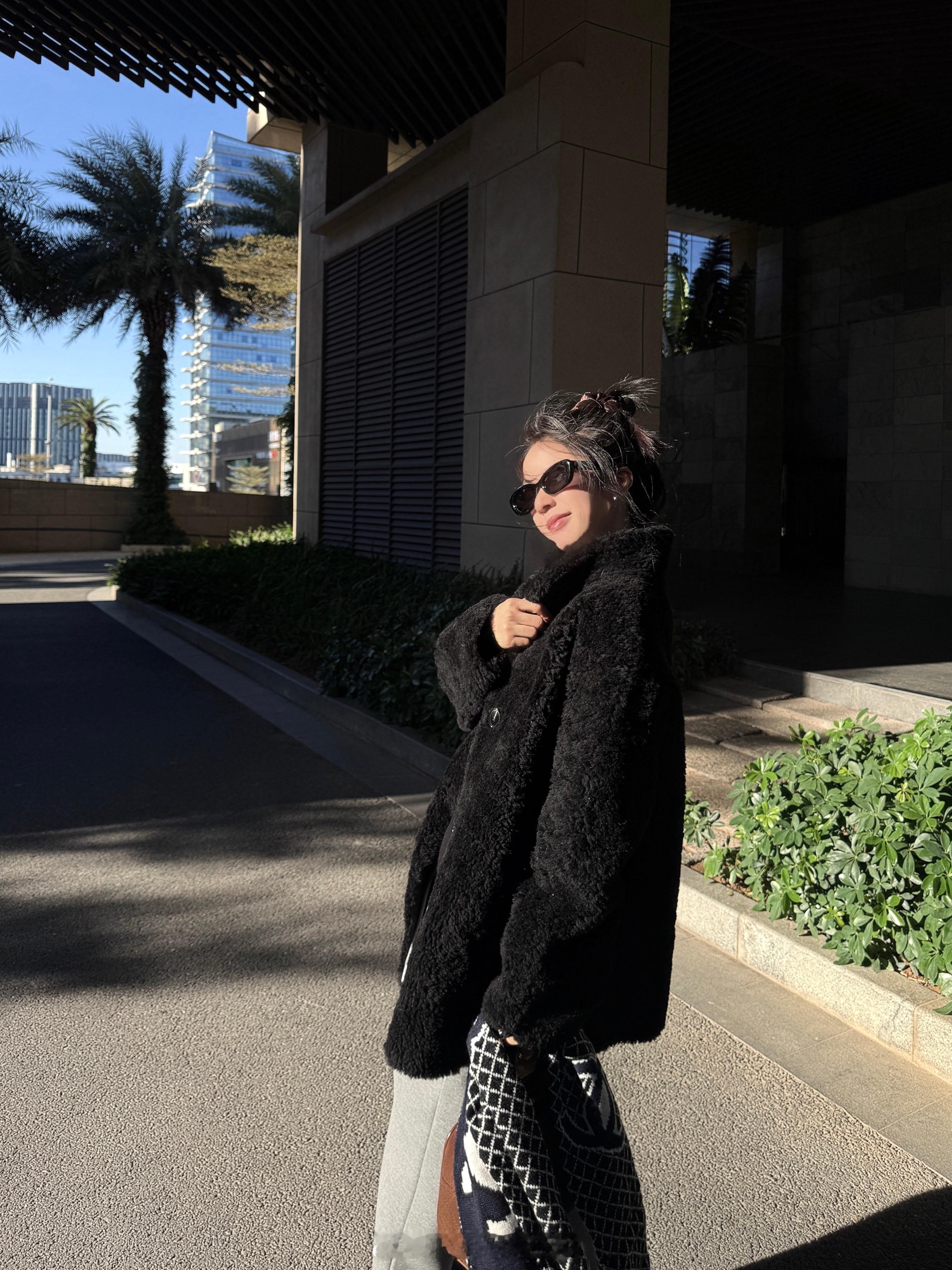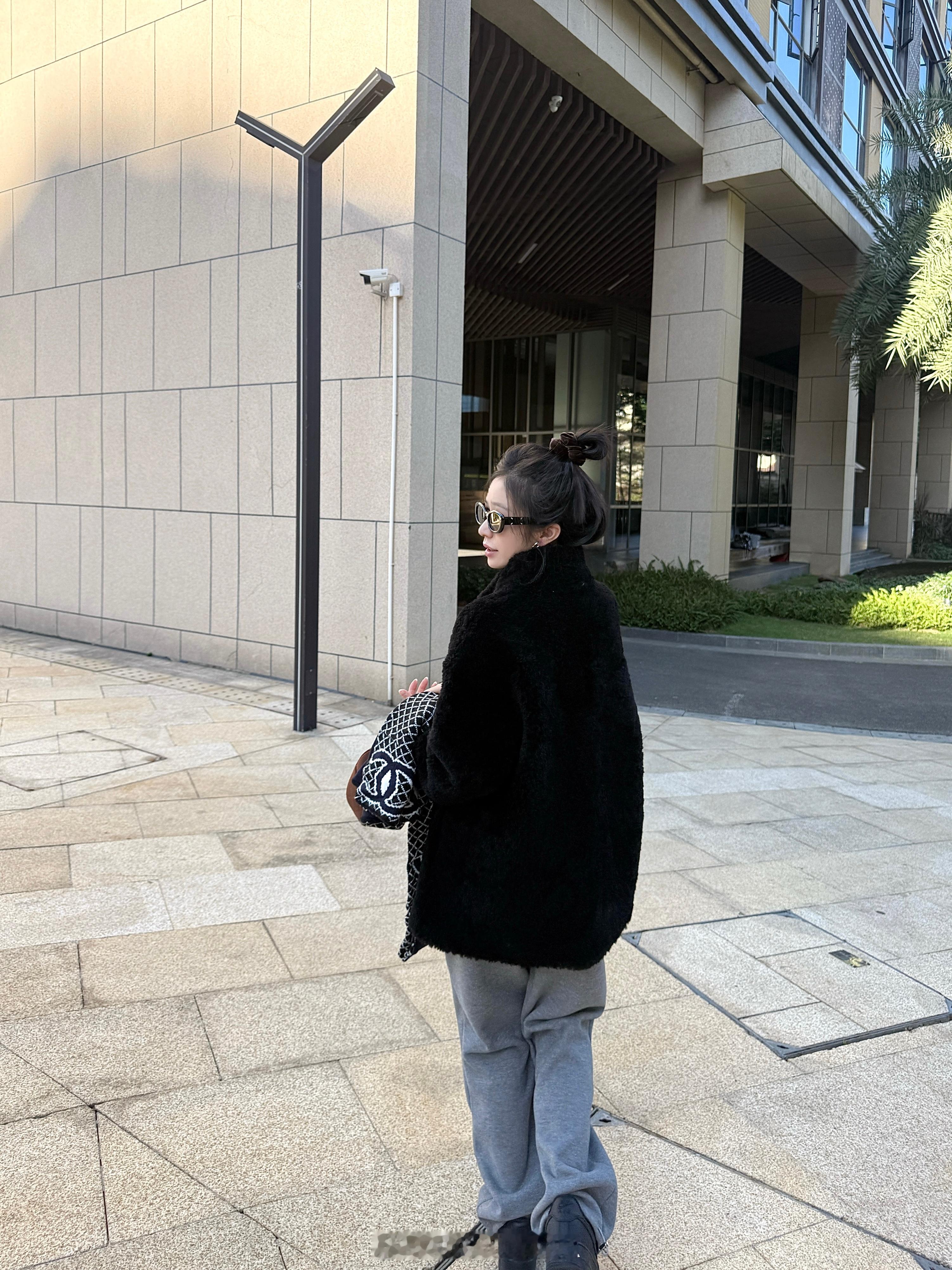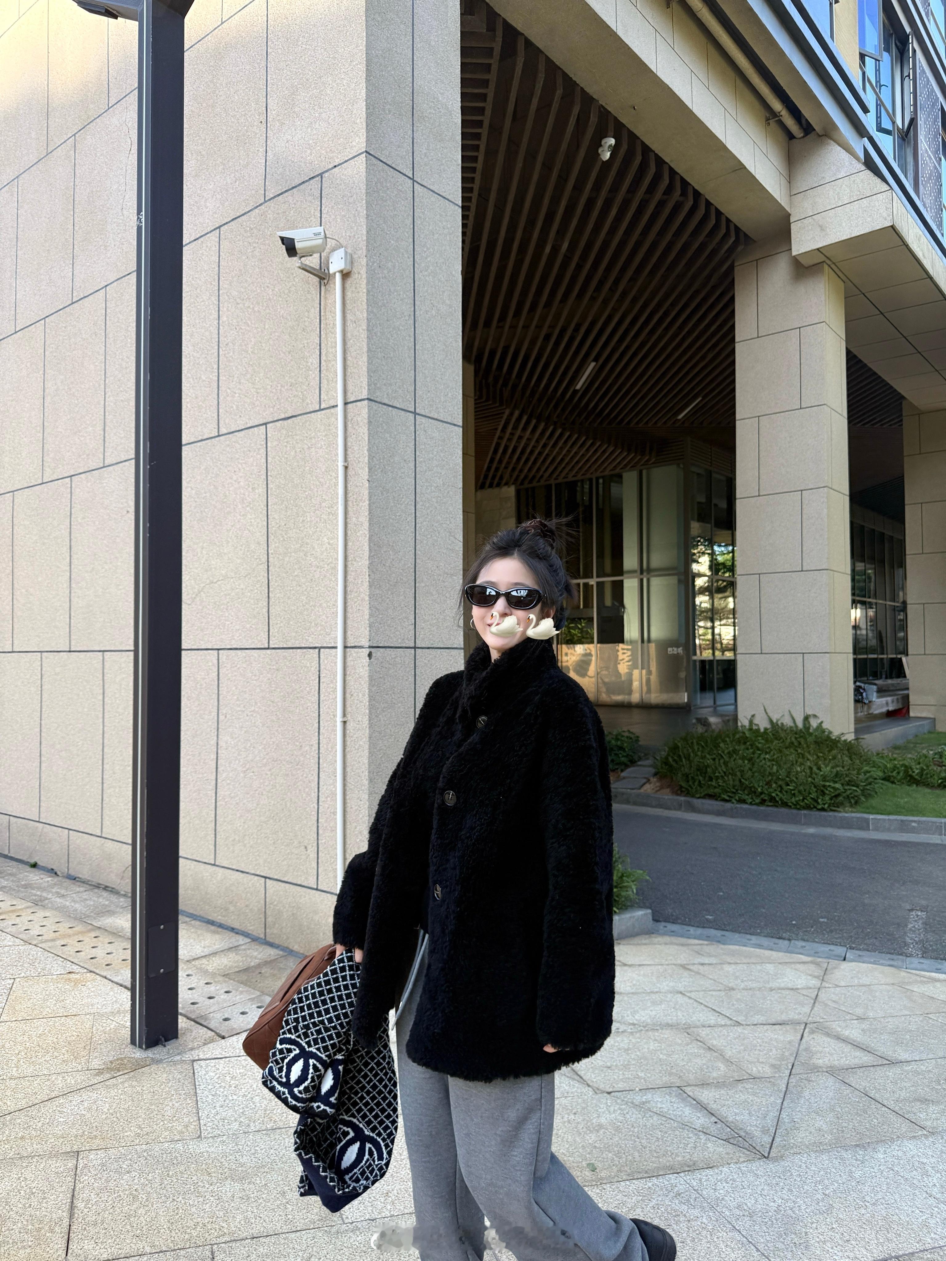 皮毛一体外套全羊毛的保暖性也够了显瘦款版型很好不会臃肿很轻盈立领设计可以当高领翻