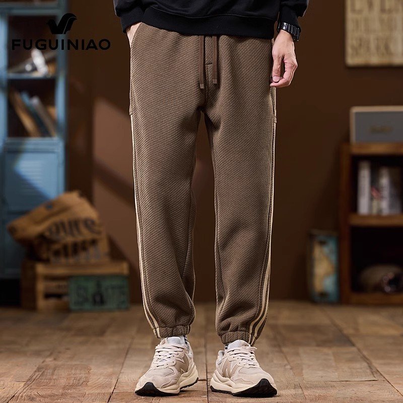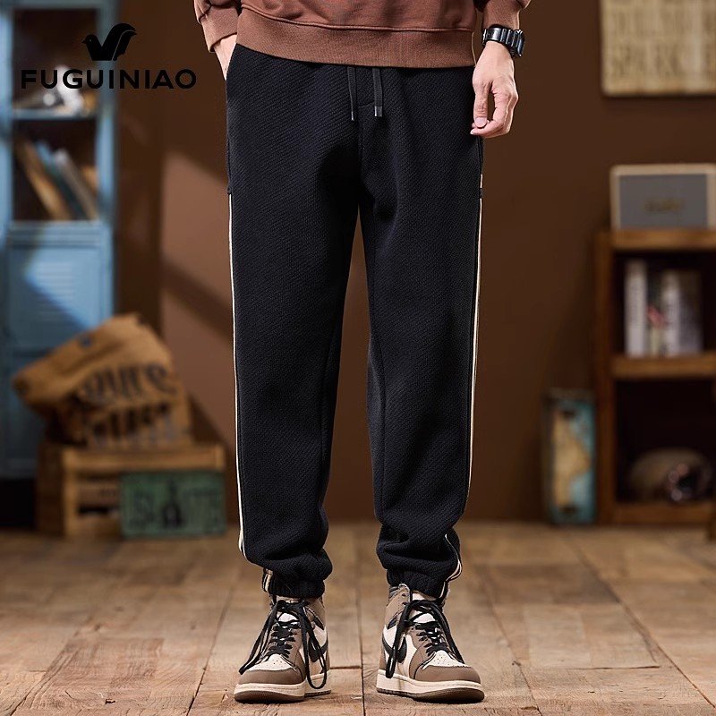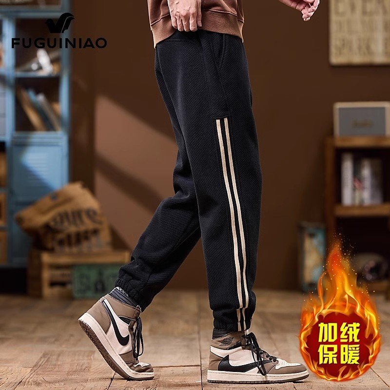 富贵鸟束脚卫裤男士2024秋冬季潮流加绒加厚运动裤休闲长裤子男款