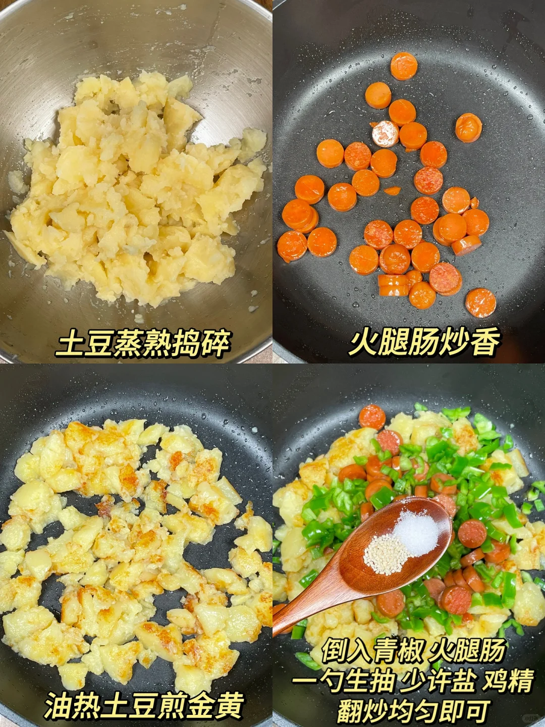 巨香巨下饭的青椒火腿土豆!一定要试试!! 土豆焦香四溢,软糯可口,加了火腿和青椒,好吃到炫不停!做法简单不翻车,求你们都去做!! [向右R]做法:如图5️⃣所示!