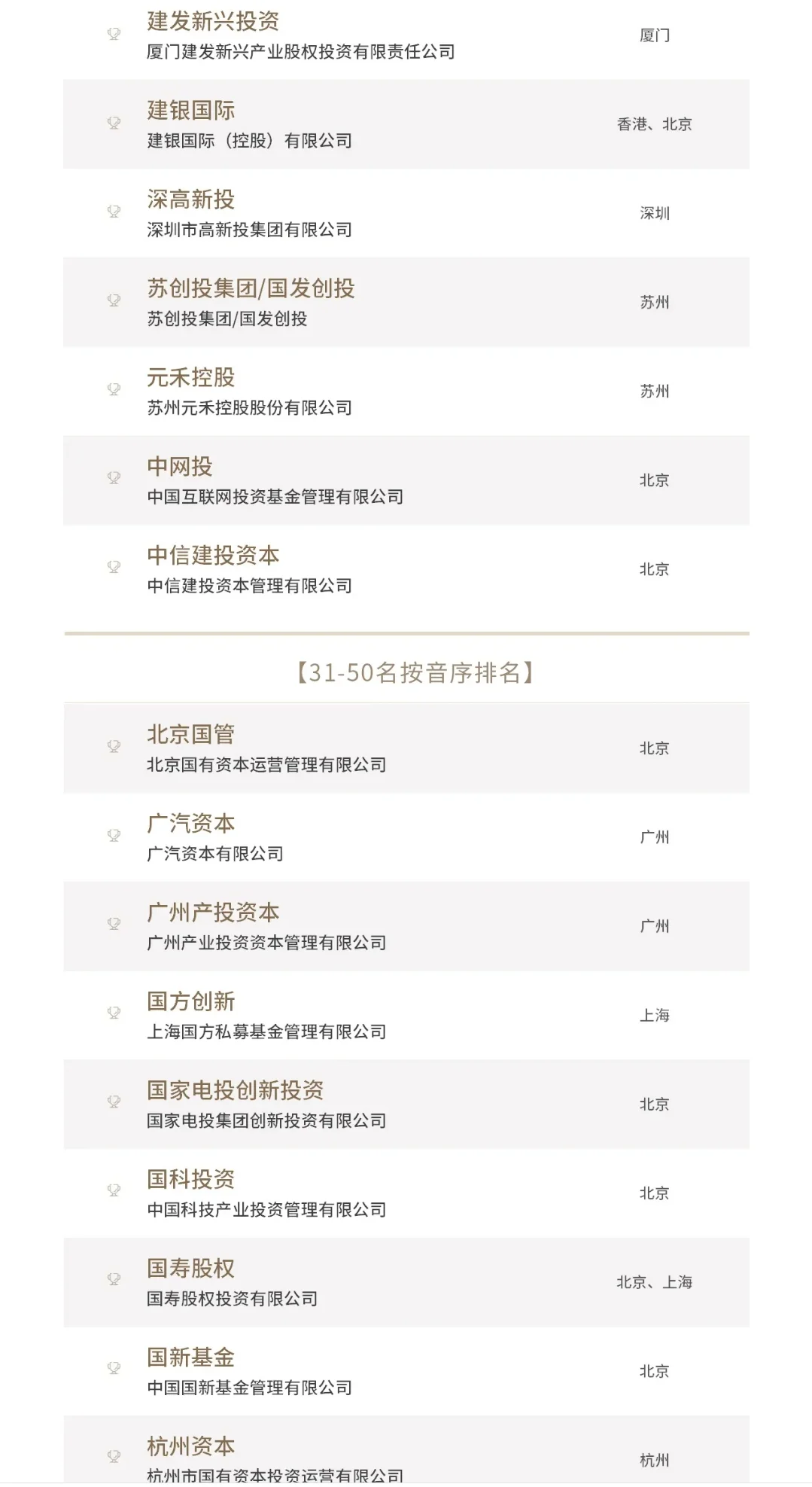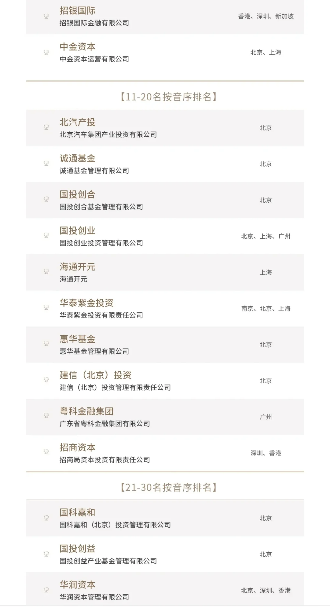新一年的投中年度最佳国资投资机构榜单出炉,