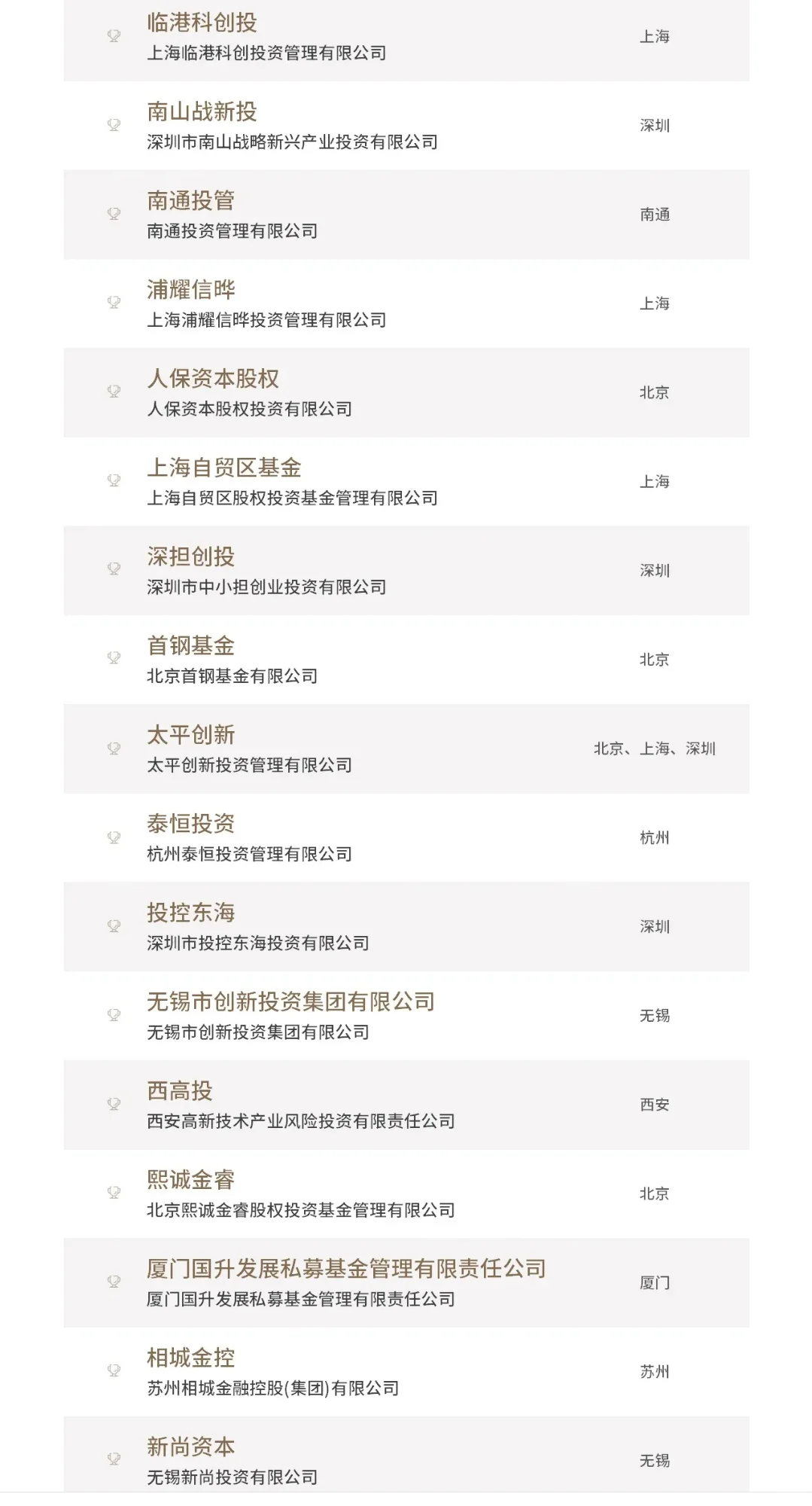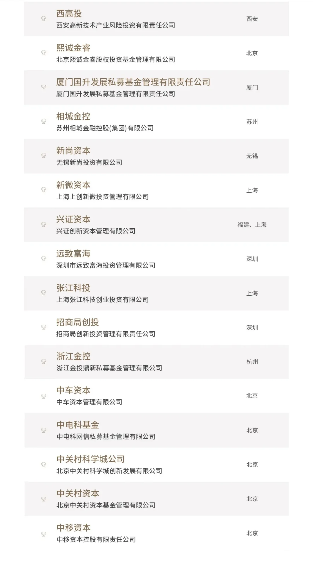 [星R]从榜单中也可以发现,北京、上海、广州、深圳、厦门、珠海各地甚至区域的国资基金越来越活跃,以及由政府、银行、保险、券商与一些头部央国企联合发起的投资机构也越来越多,可见在政策与一系列细则的推动下,通过国资投早、投小、投硬科技促进产业创新的力度也越来越明显了。