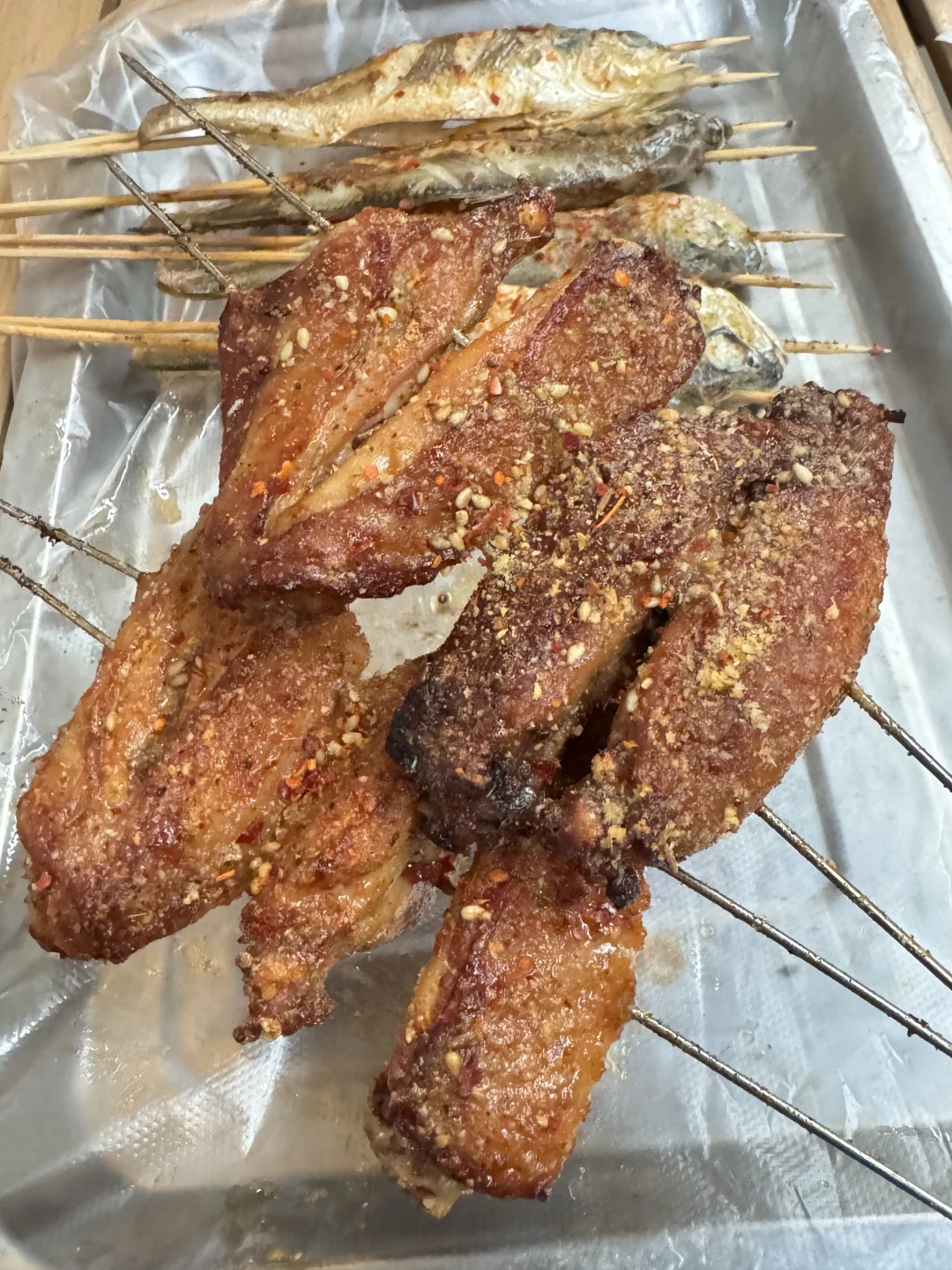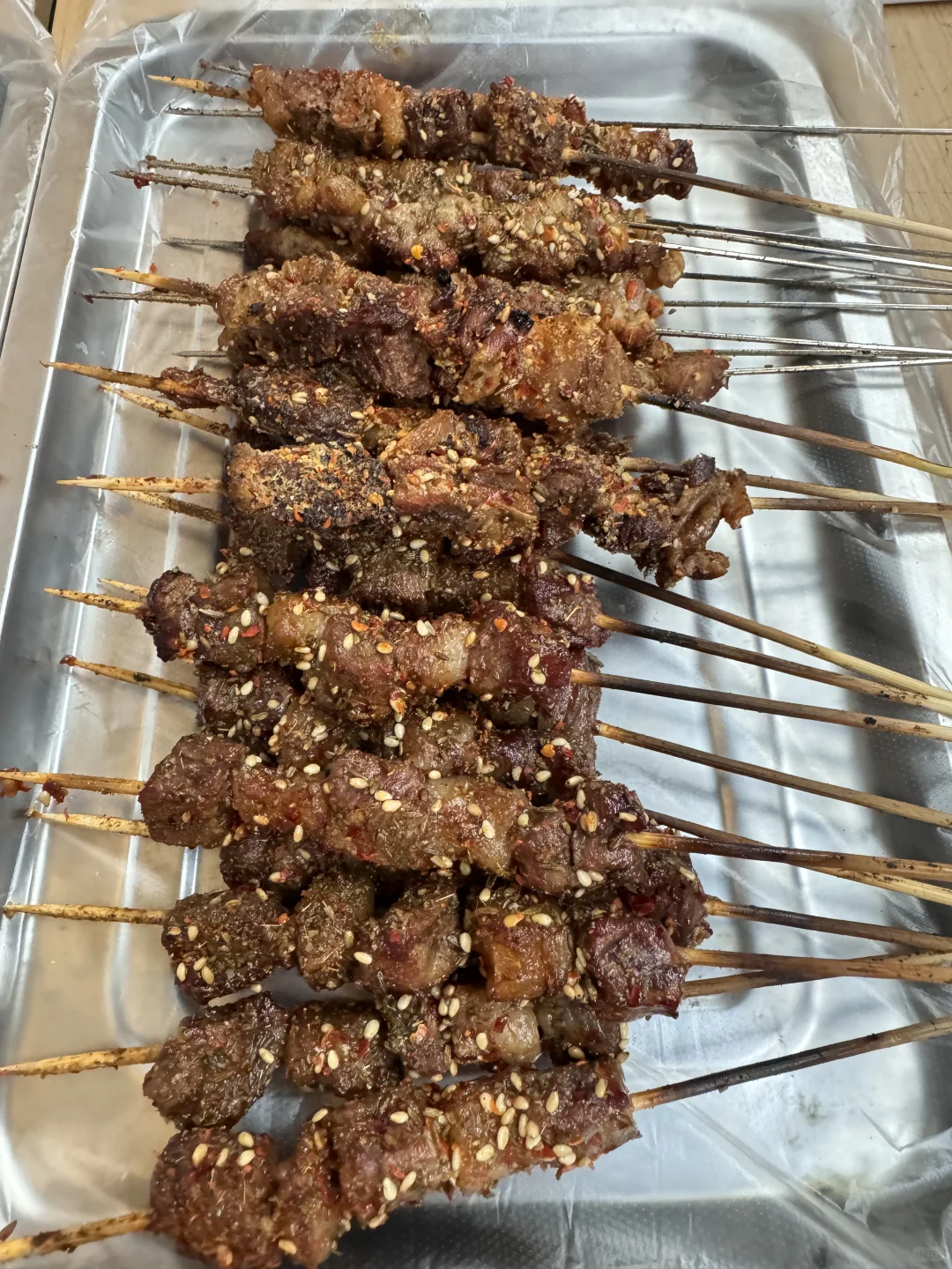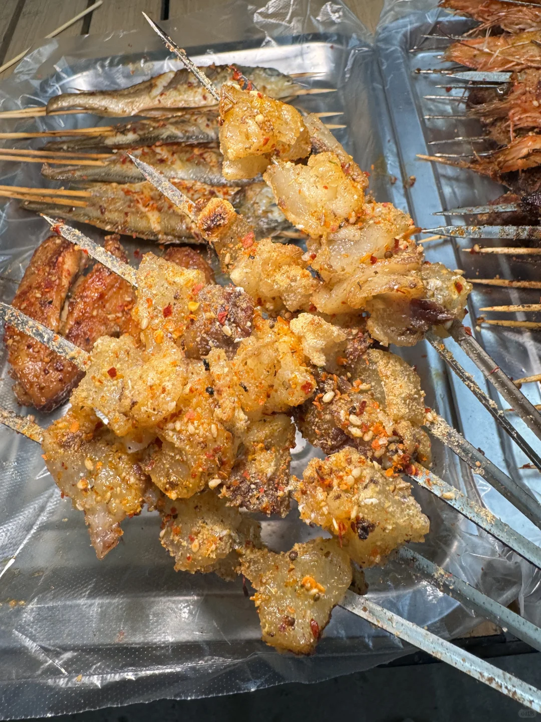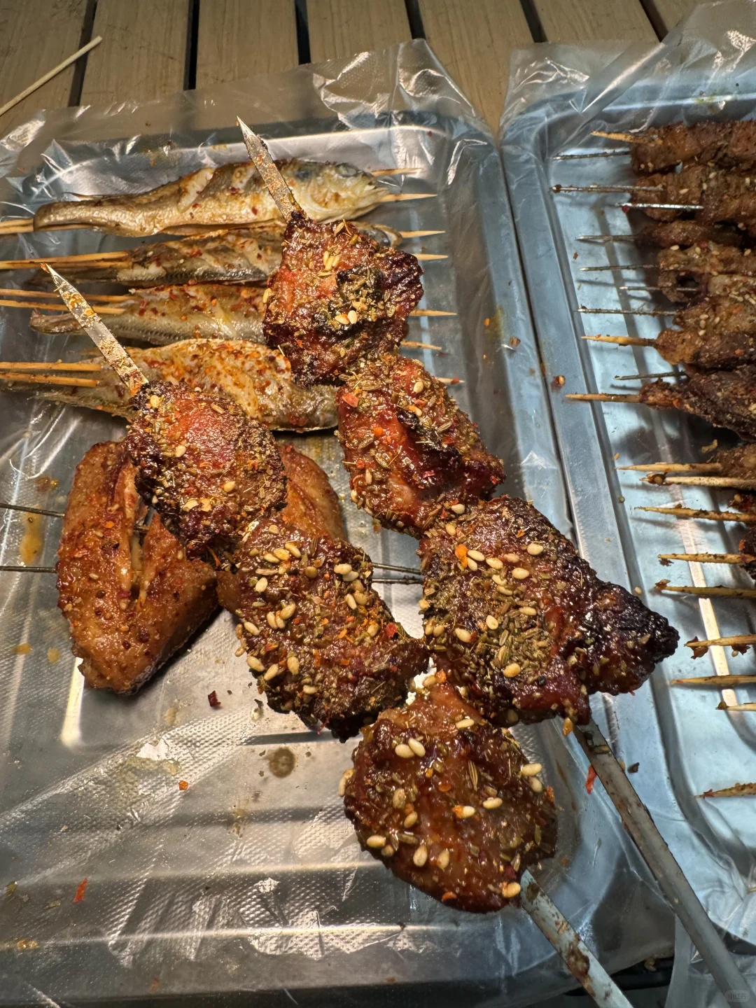网友果然没骗我,超好吃的野摊,串都是每日现串的,很新鲜,还能吃到很多别的地方吃不到的:窝骨筋、筋皮…口味特别好。天冷也没事,老板搭了围挡,特别暖和,而且不想出门也没事,老板还提供代跑腿,服务超级好。
