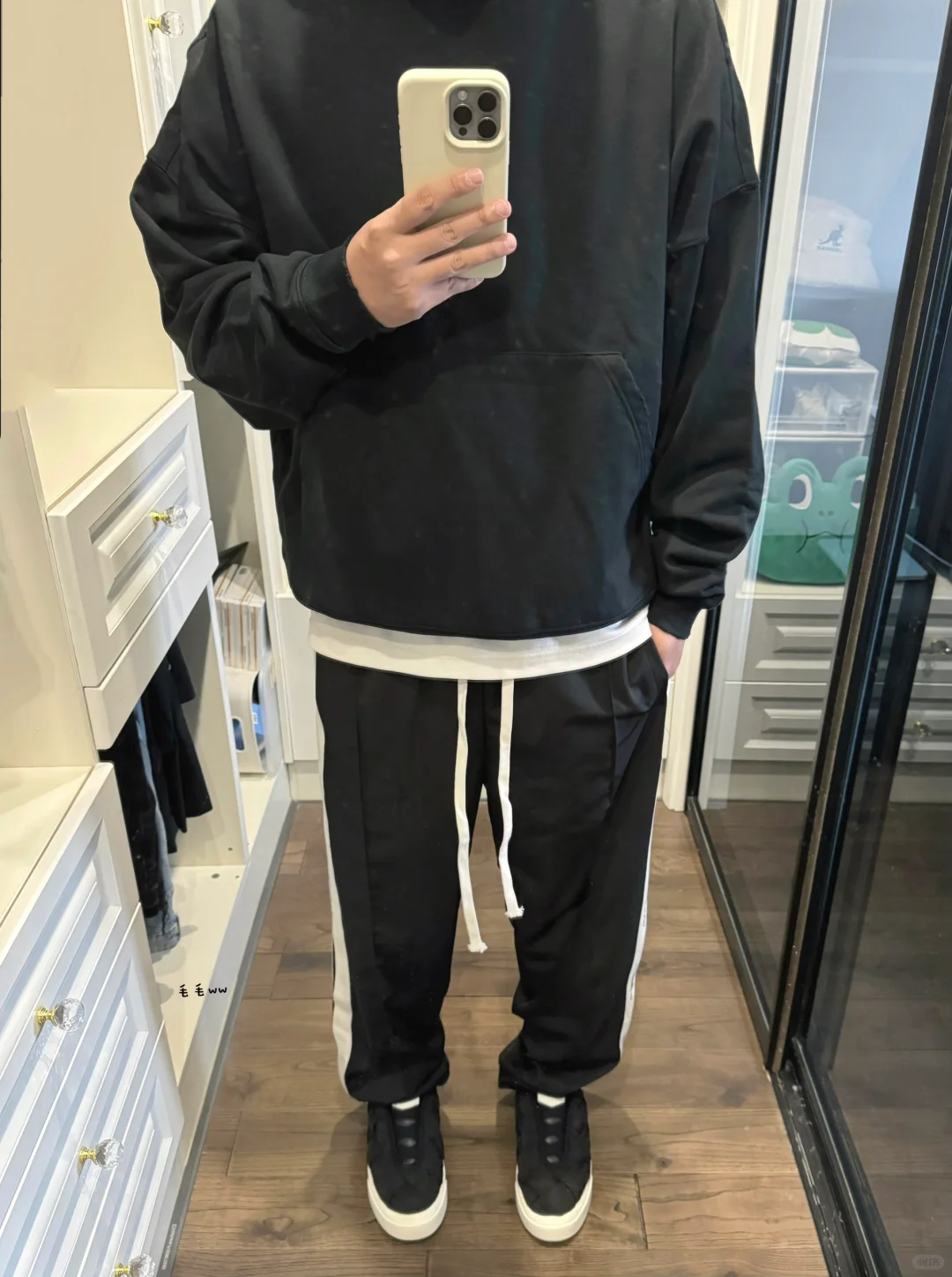 -常规的黑白色系叠穿,低调又有效 -连帽卫衣搭条纹长裤,百搭且耐看 -加厚版本的编织板鞋,绝对够温暖 . —————— . ✏️本人178cm75kg 球鞋尺码265mm(正常EU42) . 💭以上均为我个人观点,不喜勿喷,欢迎讨论