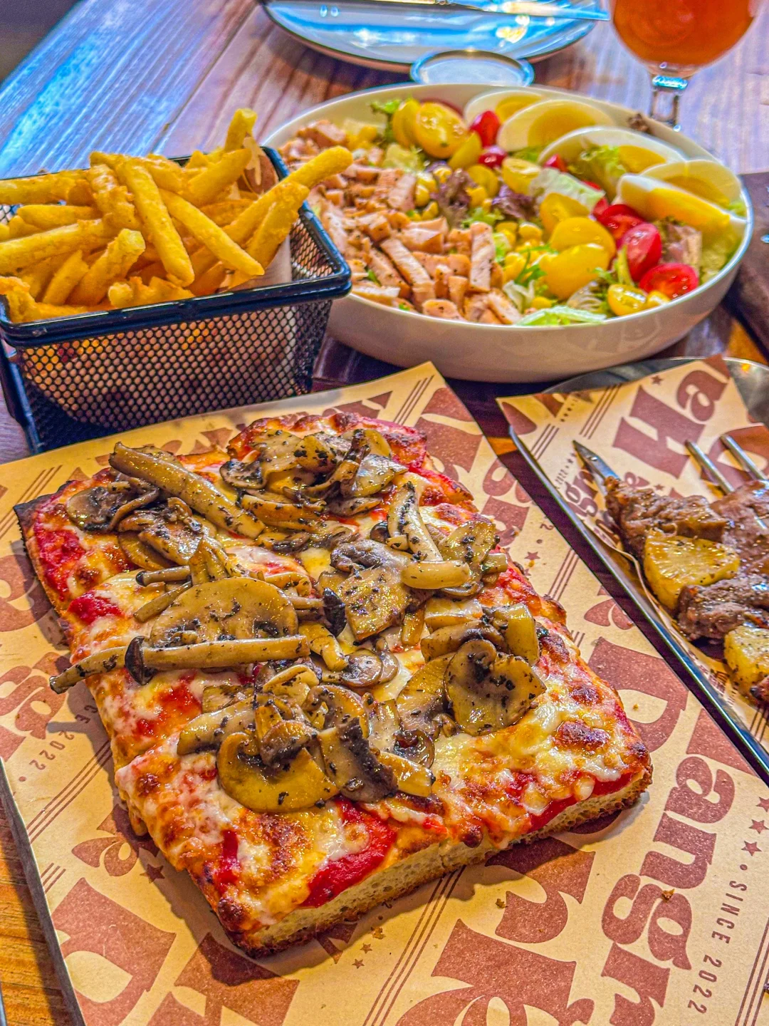 这也太好吃了吧 推荐菜品⬇️ 🥩招牌烤牛舌 🍍黑椒牛肋菠萝 🥩招牌慢烤安格斯牛胸 🍕披萨 🍟薯条 肉质鲜嫩多汁,BBQ酱汁的香甜与肉香完美融合,简直不要太好吃! 披萨饼也特别厚,馅料很丰富,很满 薯条炸的也特别酥香 环境美式复古风格,装修的很有氛围感 晚上还有乐队