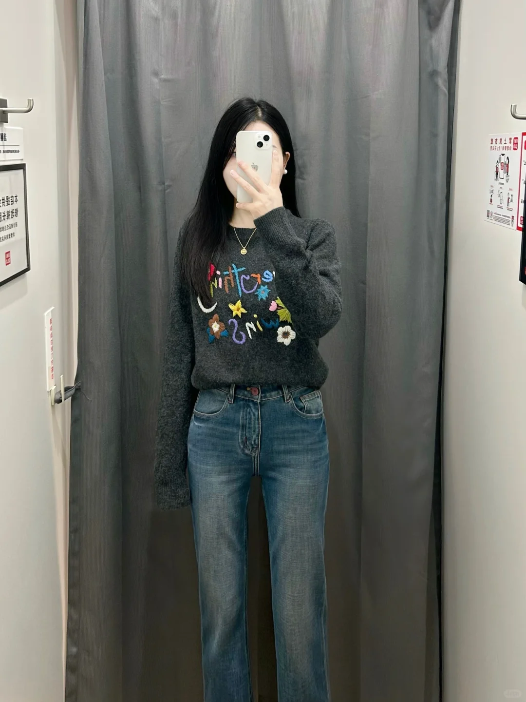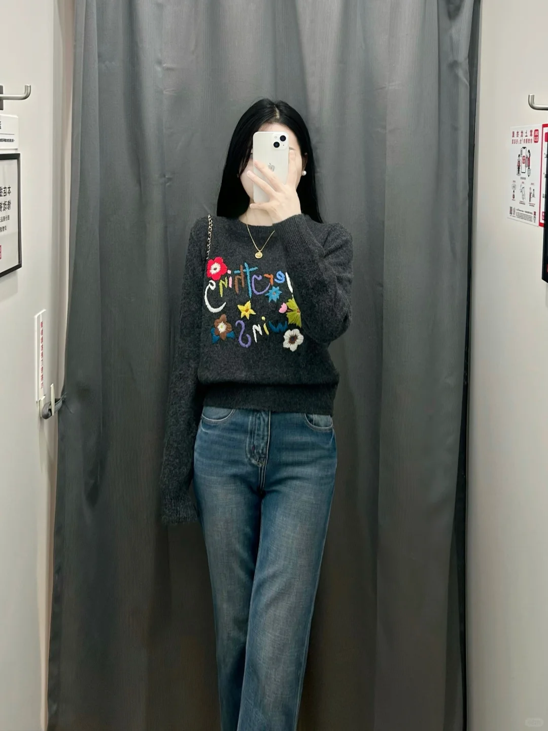 绿毛衣+白裤子,简约又舒适,戴上口罩出门去!😊👗👖👟
