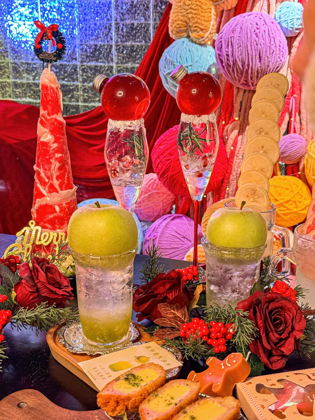 就知道这家店圣诞肯定会有惊喜! 已经出了好几款圣诞限🌟定的漂亮酒 还有一个巨大的🧶毛线圣诞树!嘎嘎出片 圣诞餐可以安排起来噜~~