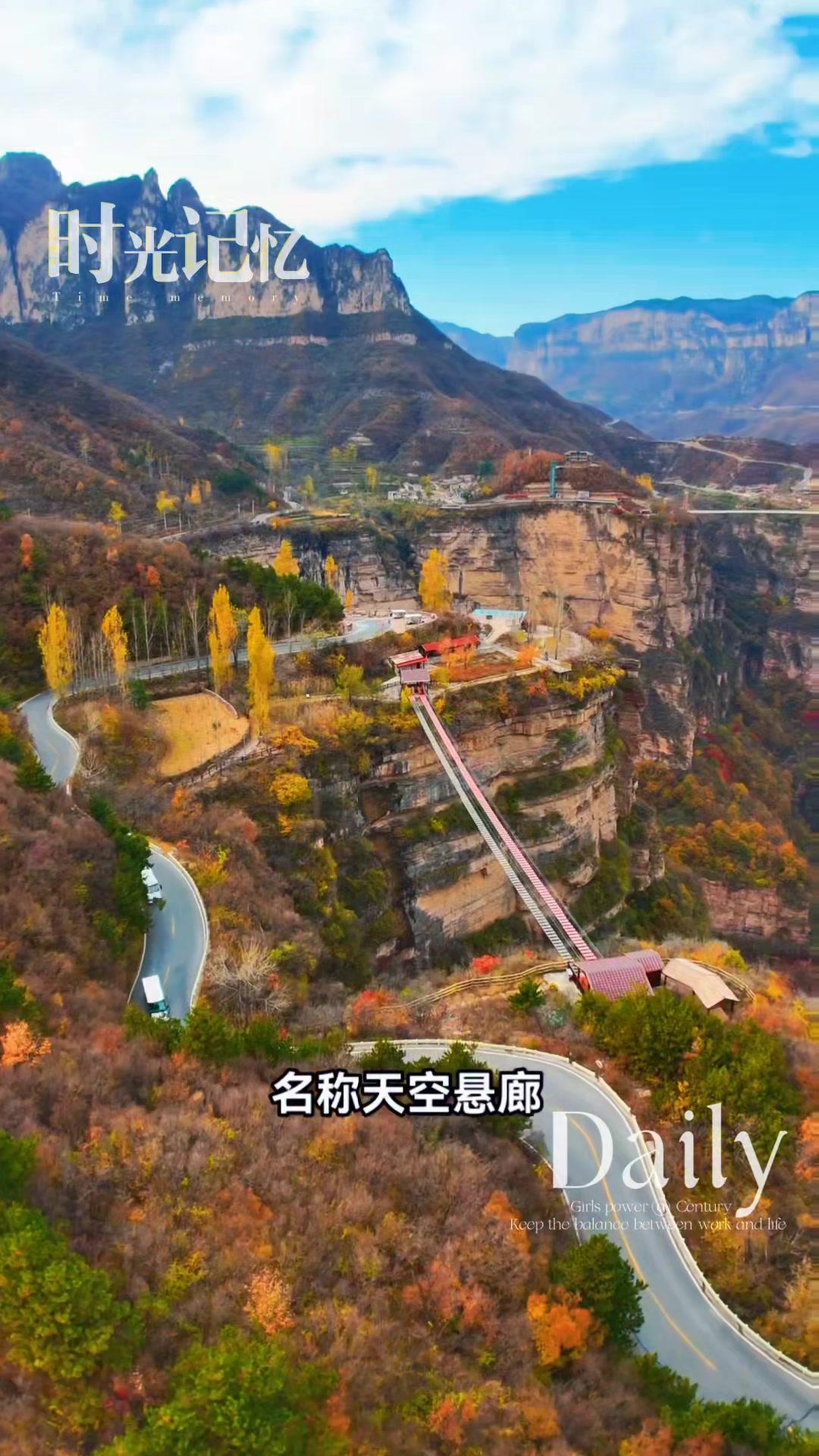 ✨景区:河南太行大峡谷太行天路。 1️⃣名称:天空悬廊。 2️⃣海拔:与地面落差466米。 3️⃣地位:华中地区首座悬式挑式玻璃观景台。 4️⃣景色:站在这里可以360度俯瞰太行大峡谷面貌。 5️⃣因地质奇观,每到雨后总能出现多次云海景象。 6️⃣地位:云端之上,太行之巅。 7️⃣荣誉:被誉为最美太行大峡谷其中之一。