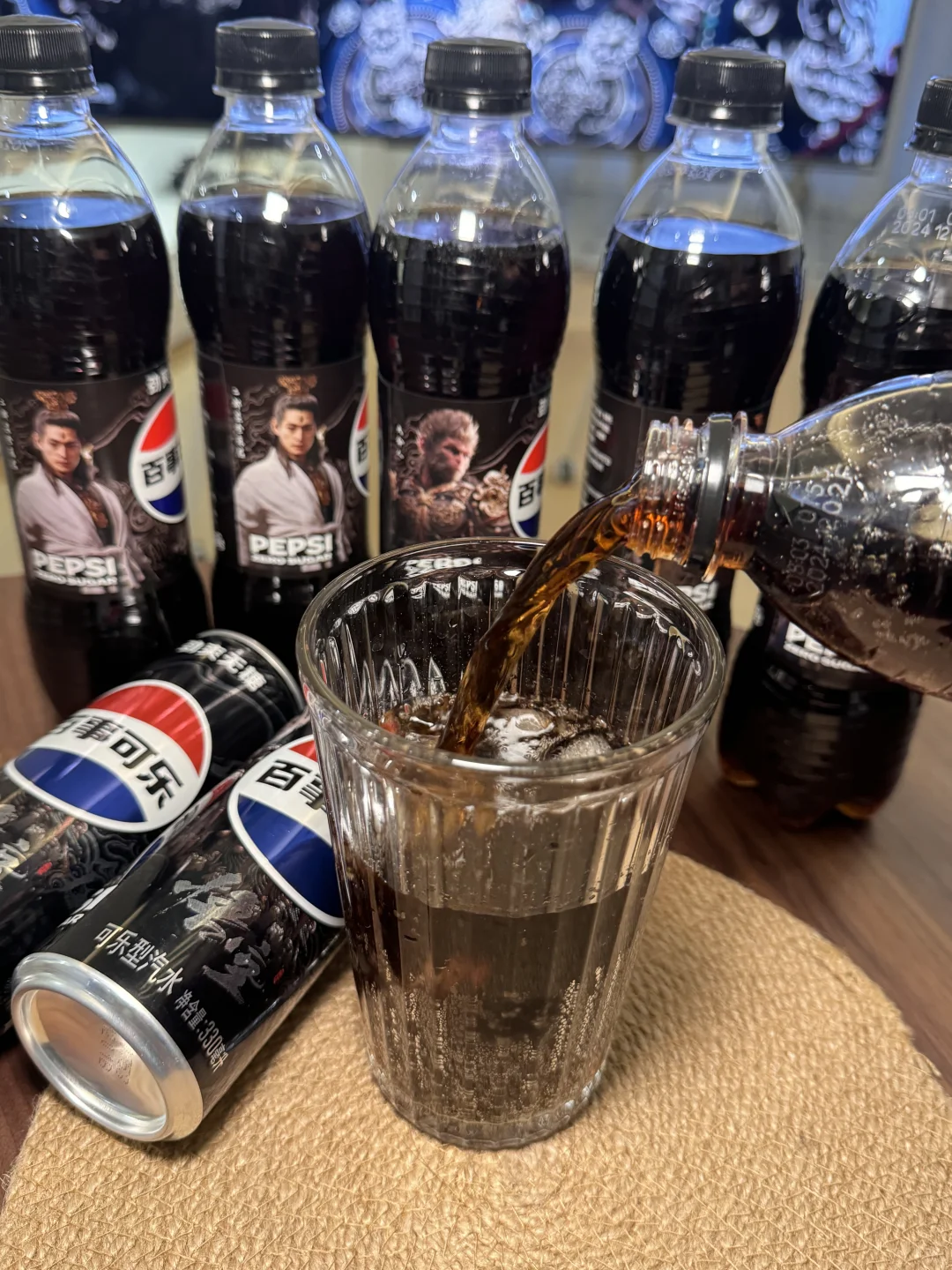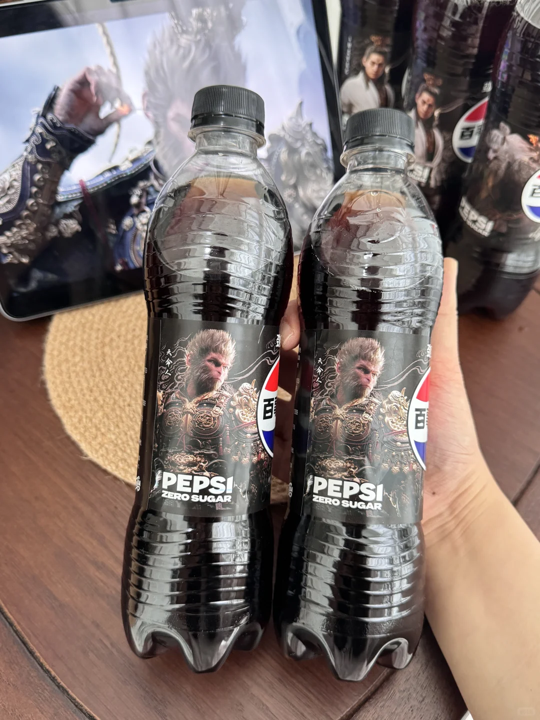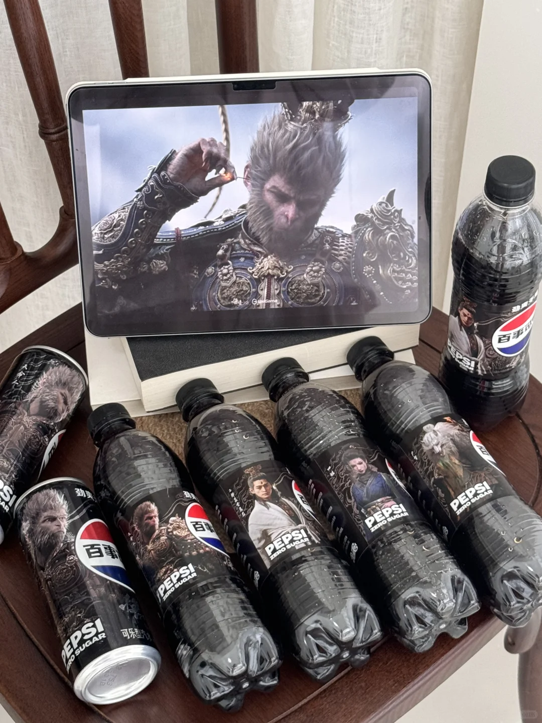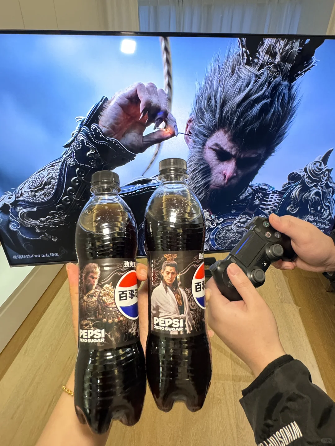 百事可乐×《黑神话:悟空》联名款??? 最爱的饮料竟然和最喜欢的游戏出现在同一个画面!!! 谁懂这种梦幻联动啊?双厨粉简直算是提前过年了(撒花~) 天命人、广智、八戒、四姐,还有二郎显圣真君..… 每一个角色和百事可乐无糖搭配起来都超级炫酷。 - 看看这超足小气泡儿,一口封神!无糖也那么好喝! 一口下去好运buff叠加,简直是关关难过关关过!!! - 嘿嘿我已经买了很多放冰箱啦, 打“黑神话”的时候来一瓶, 那不得是毫无阻碍一路通关啊~