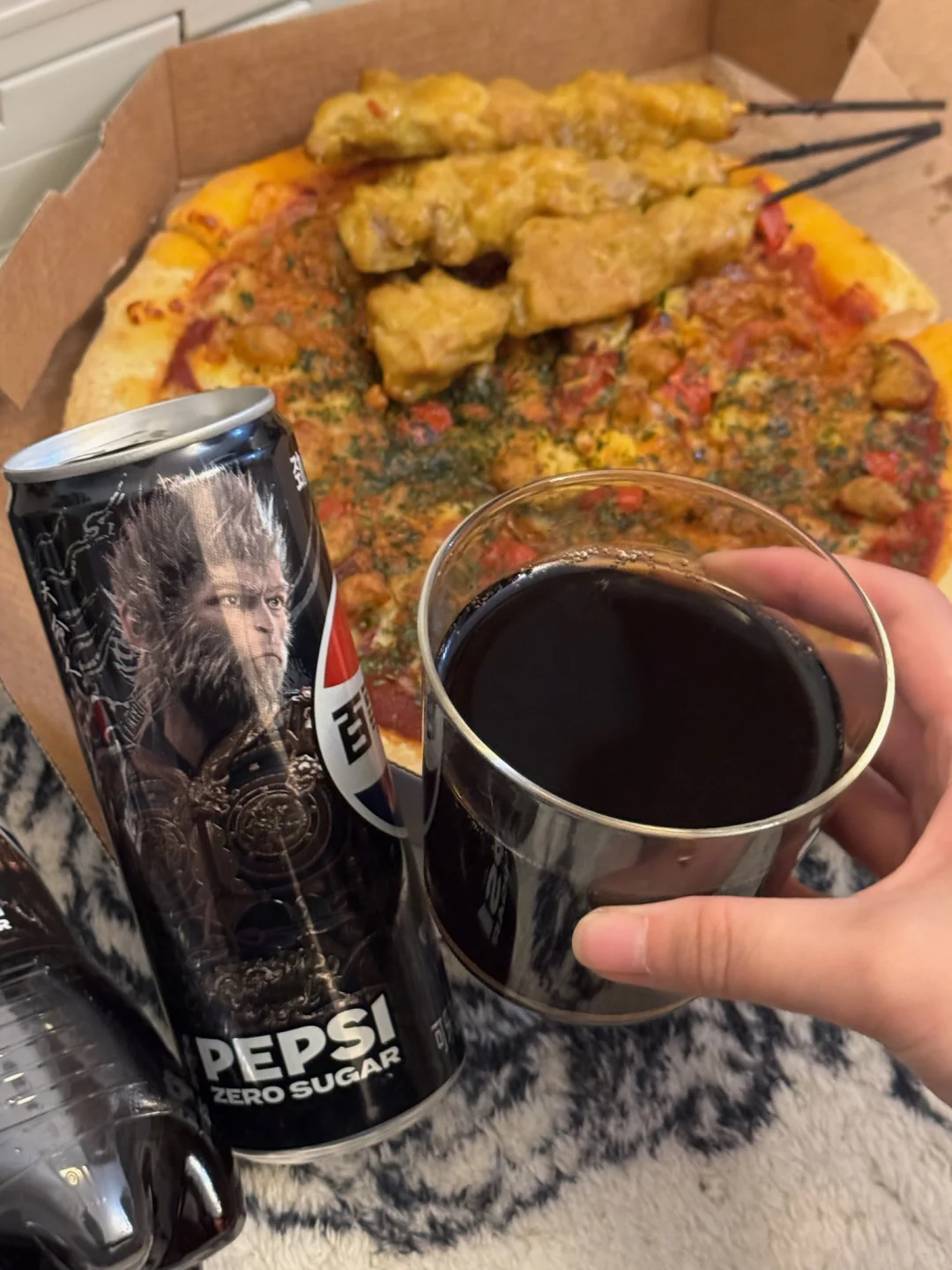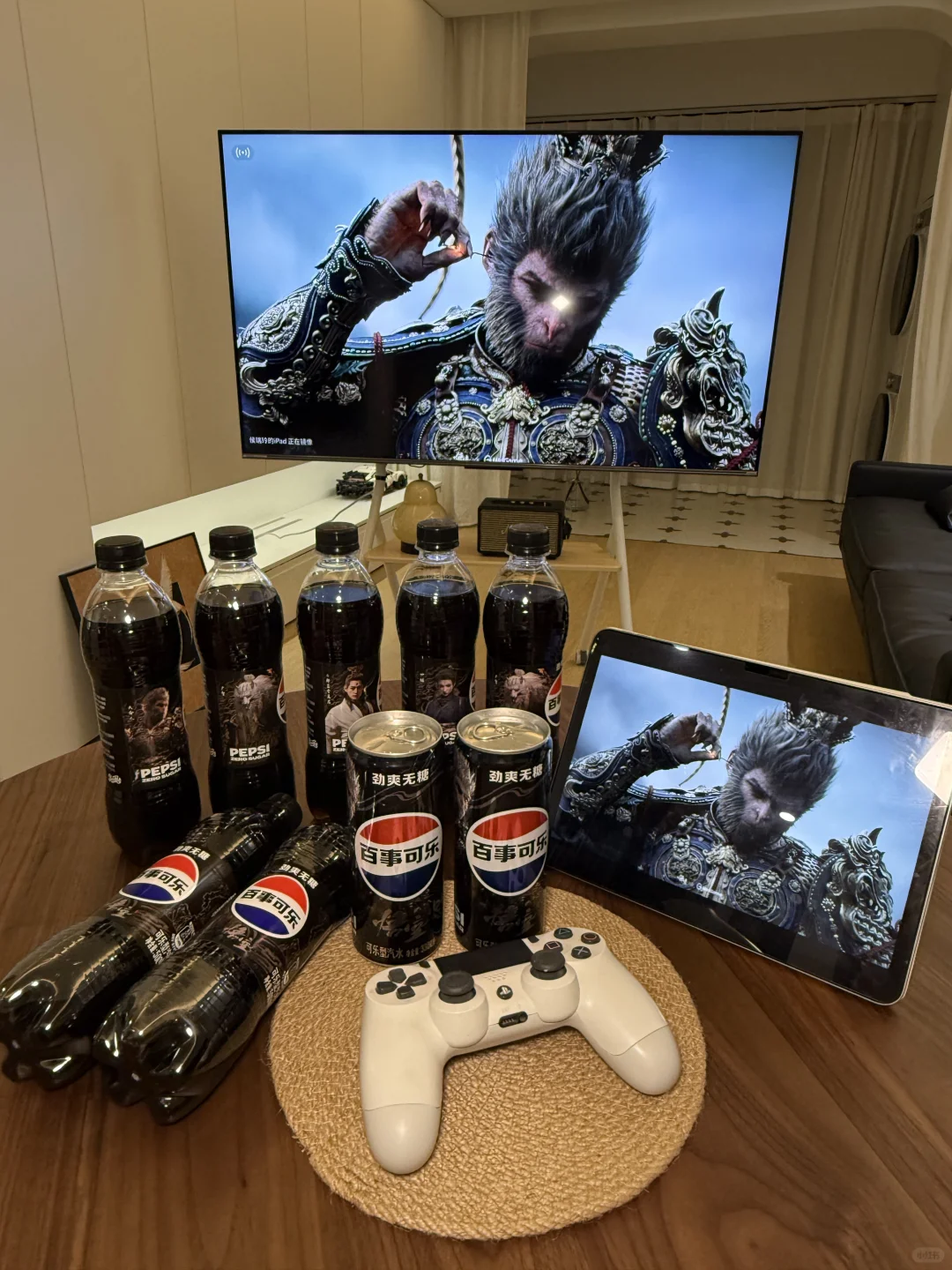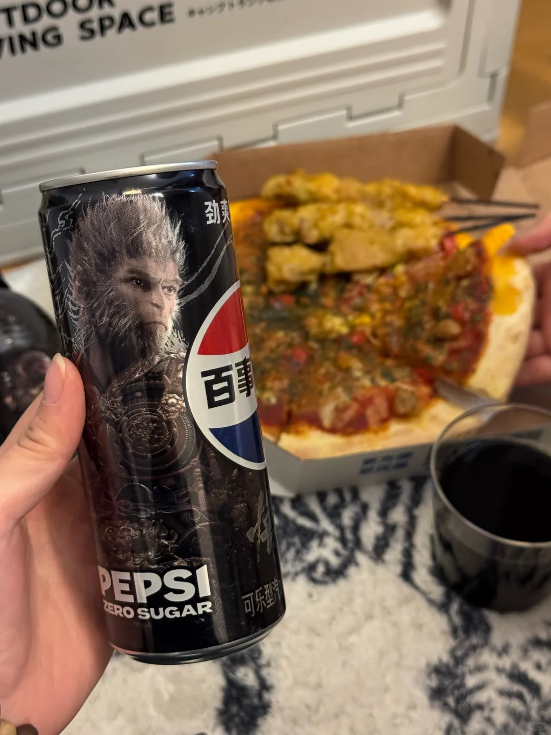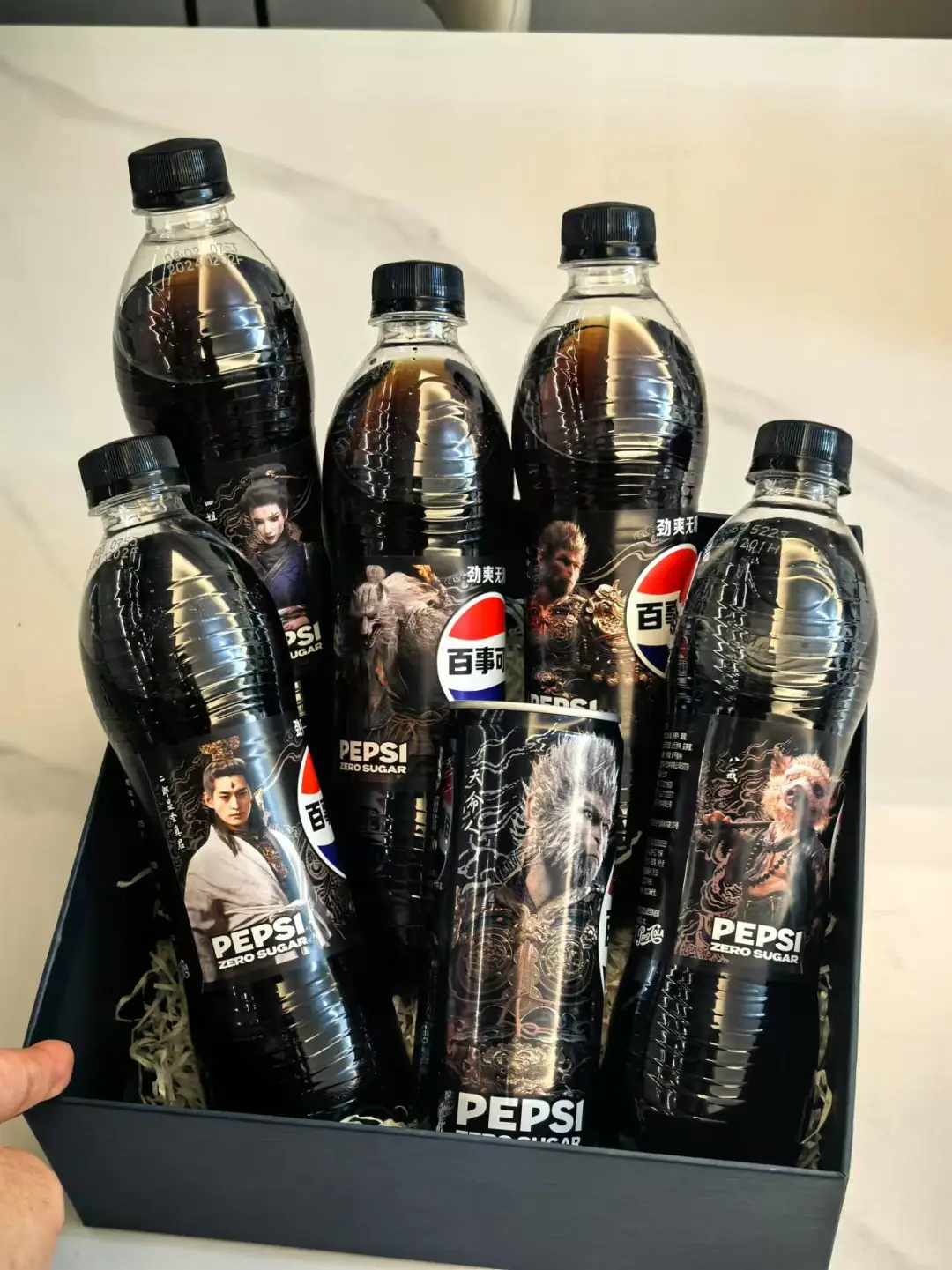 百事可乐×《黑神话:悟空》联名款??? 最爱的饮料竟然和最喜欢的游戏出现在同一个画面!!! 谁懂这种梦幻联动啊?双厨粉简直算是提前过年了(撒花~) 天命人、广智、八戒、四姐,还有二郎显圣真君..… 每一个角色和百事可乐无糖搭配起来都超级炫酷。 - 看看这超足小气泡儿,一口封神!无糖也那么好喝! 一口下去好运buff叠加,简直是关关难过关关过!!! - 嘿嘿我已经买了很多放冰箱啦, 打“黑神话”的时候来一瓶, 那不得是毫无阻碍一路通关啊~