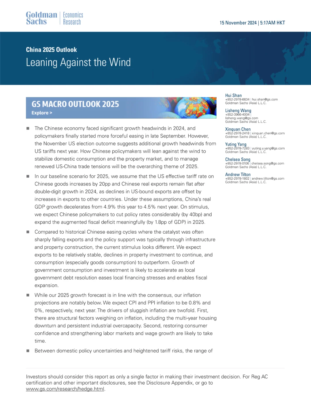 2025年经济预测📈 GDP增长:预计中国实际GDP增长率将从2024年的4.9%放缓至2025年的4.5%。 政策支持:预计中国政策制定者将大幅降低政策利率(40个基点)并显著扩大财政赤字(GDP的1.8个百分点)。 完整报告更详细,感兴趣请在左下方【购买同款】