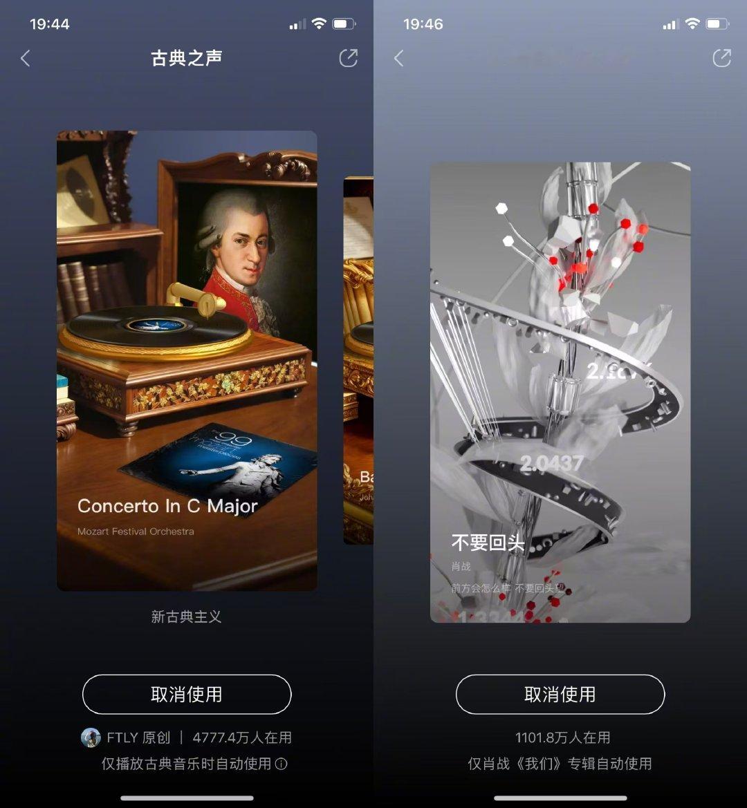 1.在本次肖战新专辑《我们》的平台宣发中,平台团队主动设置了一个免费的播放器装扮彩蛋,即播放该专辑的歌曲时,将换上该专辑歌曲的皮肤设置。该专辑彩蛋只面向《我们》专辑生效。此种内容运营类装扮彩蛋之前也曾多次上线过,如面向古典内容的“古典之声”装扮。