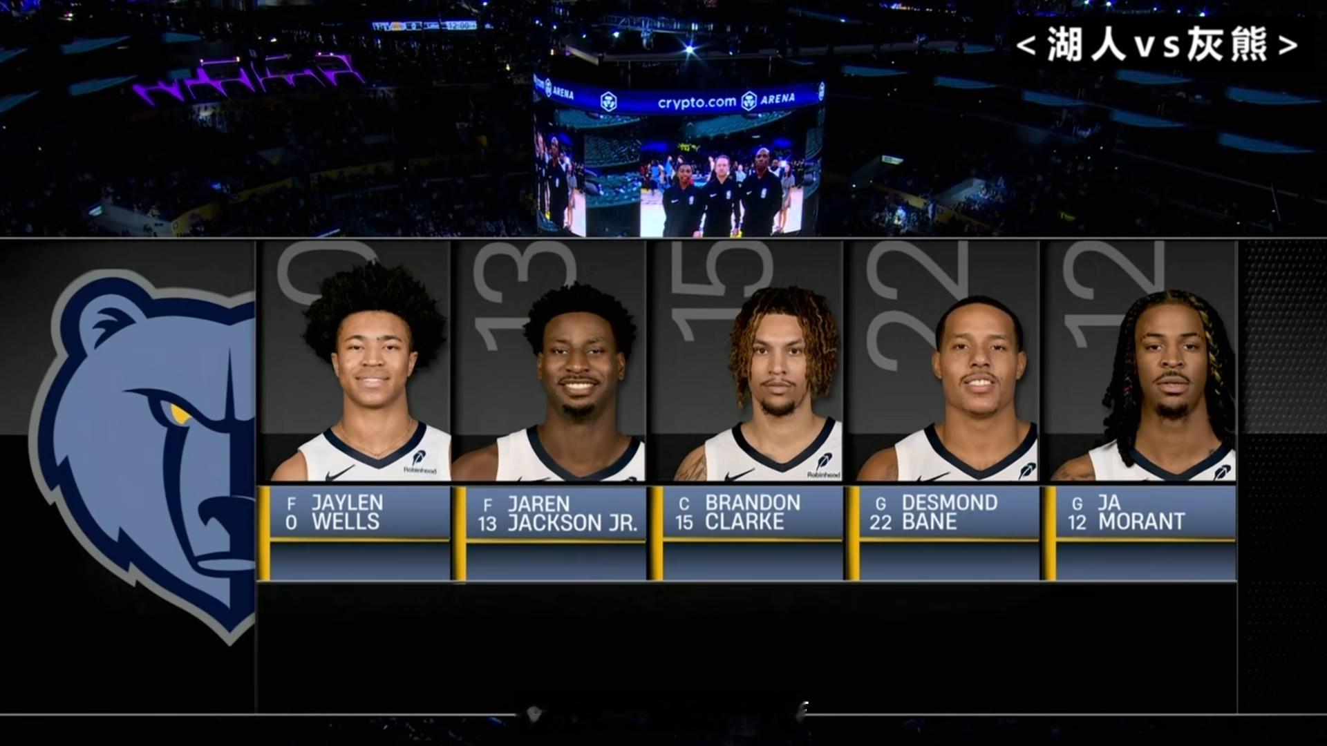 灰熊首发:莫兰特、韦尔斯、贝恩、克拉克、杰克逊