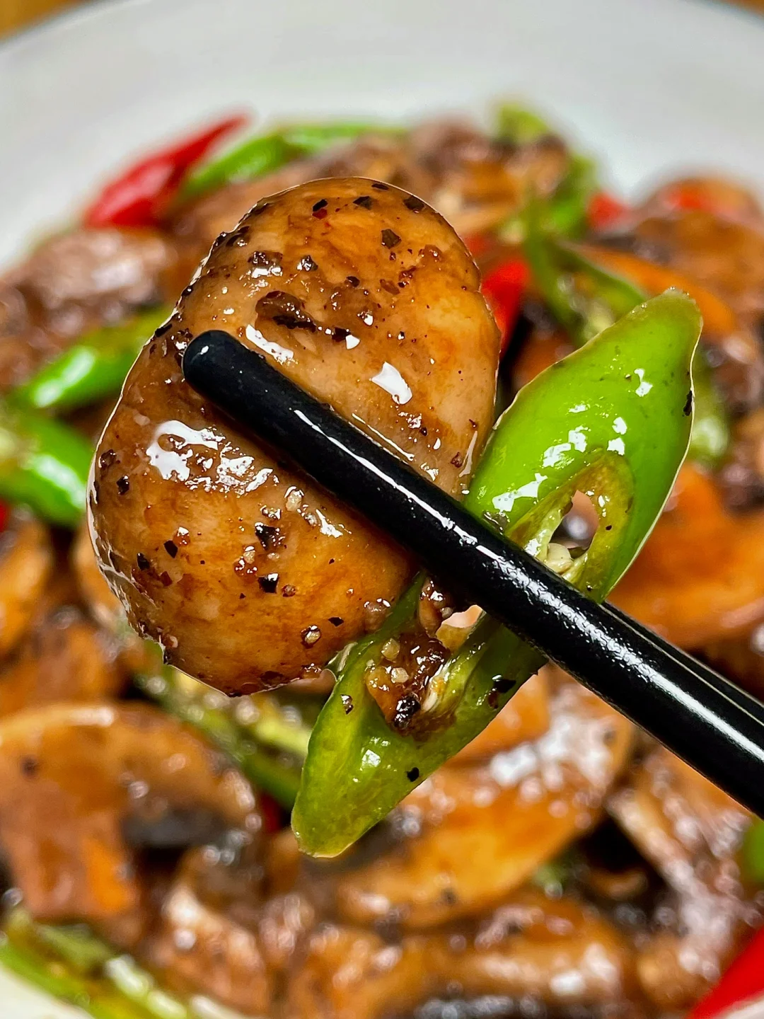 超好吃的双椒口蘑!一定要试试!! 口蘑香辣可口,鲜香味美,好吃到炫不停[色色R]鲜嫩多汁巨下饭!做法简单不翻车,求你们都去做!! [向右R]做法:如图5️⃣所示!