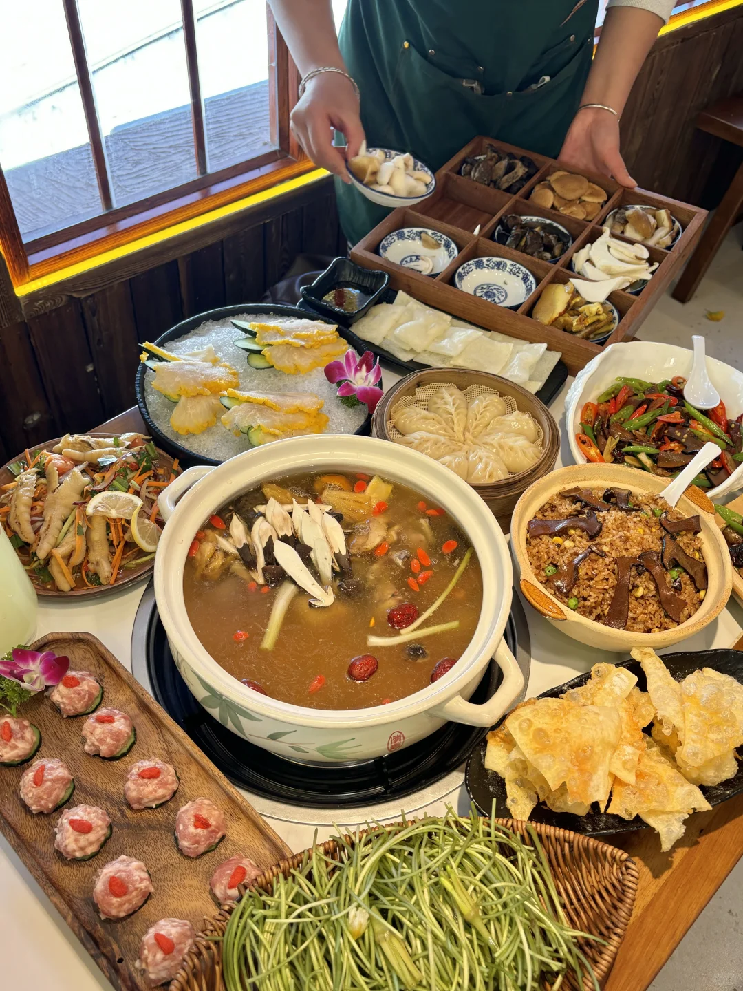 本地朋友带路才找到的,hin有烟火气的小店,街道旁边的银杏树金灿灿的好美🥹🥹 我们点的野生菌火锅,锅底都是土鸡汤现熬的,要先加入土鸡在加入各种菌菇,熟了才能给筷子hh,我连喝了两碗真的好鲜好好喝… 炒见手青滑滑嫩嫩的,吃起来确实不错,还有野生菌炒饭、炸乳扇、水性杨花…基本上盲点都不会出错,属于我会反复来的店了🥹🥹 记住这个位置📍滇师傅·野生菌火锅