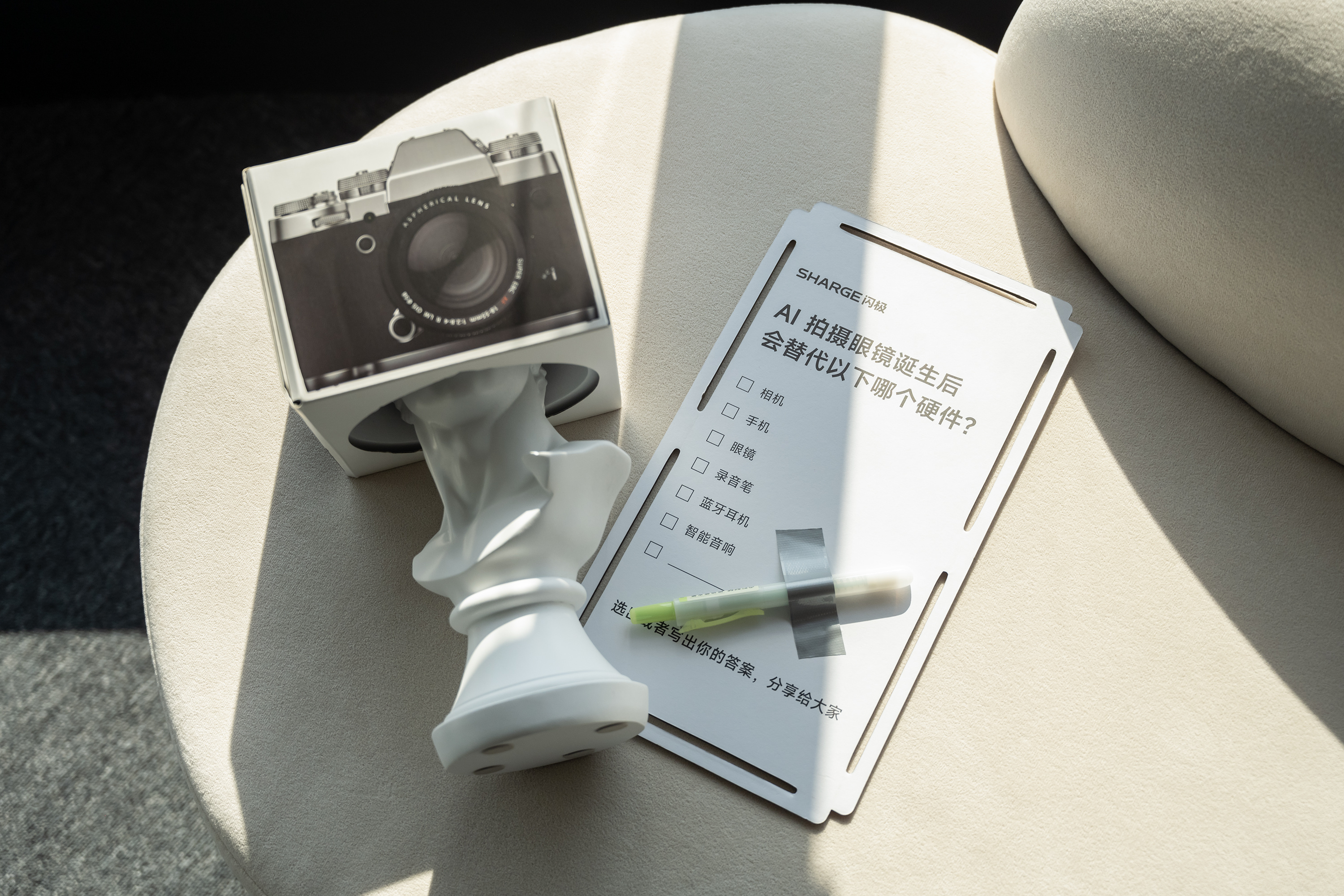 收到闪极____眼镜发布会邀请函了,相机盒子套在大卫的头上,眼睛还用绿色贴纸覆盖了,配上了一个“AI拍摄眼镜诞生后,会替代以下哪个硬件”的问题,所以大家感觉会替代哪个呢?[并不简单]